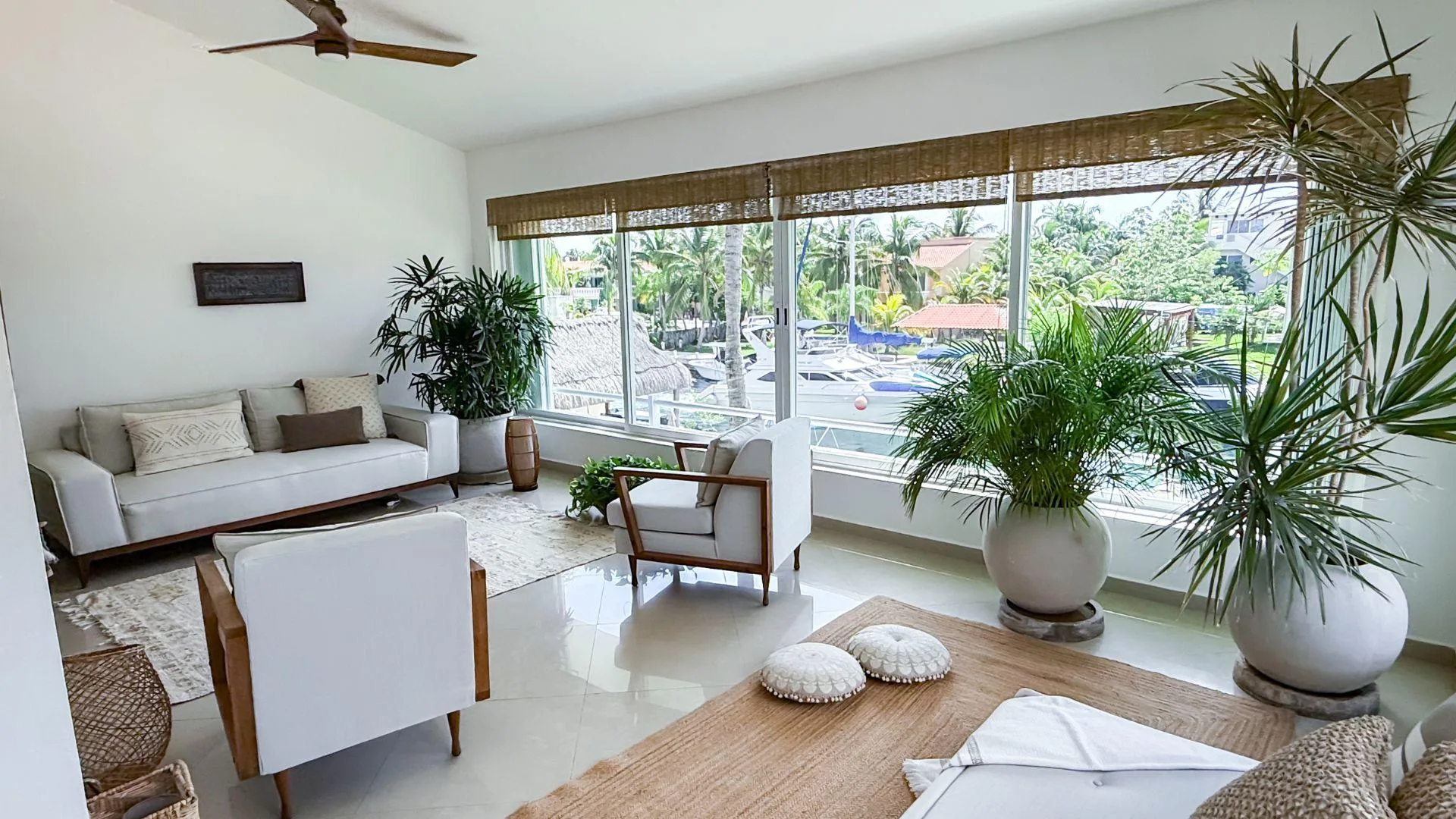 The secure gated community features lush gardens, a pool and palapa area, a private marina and yacht dock, and 24-hour security. It is situated just steps away from the beach, restaurants, and shopping.