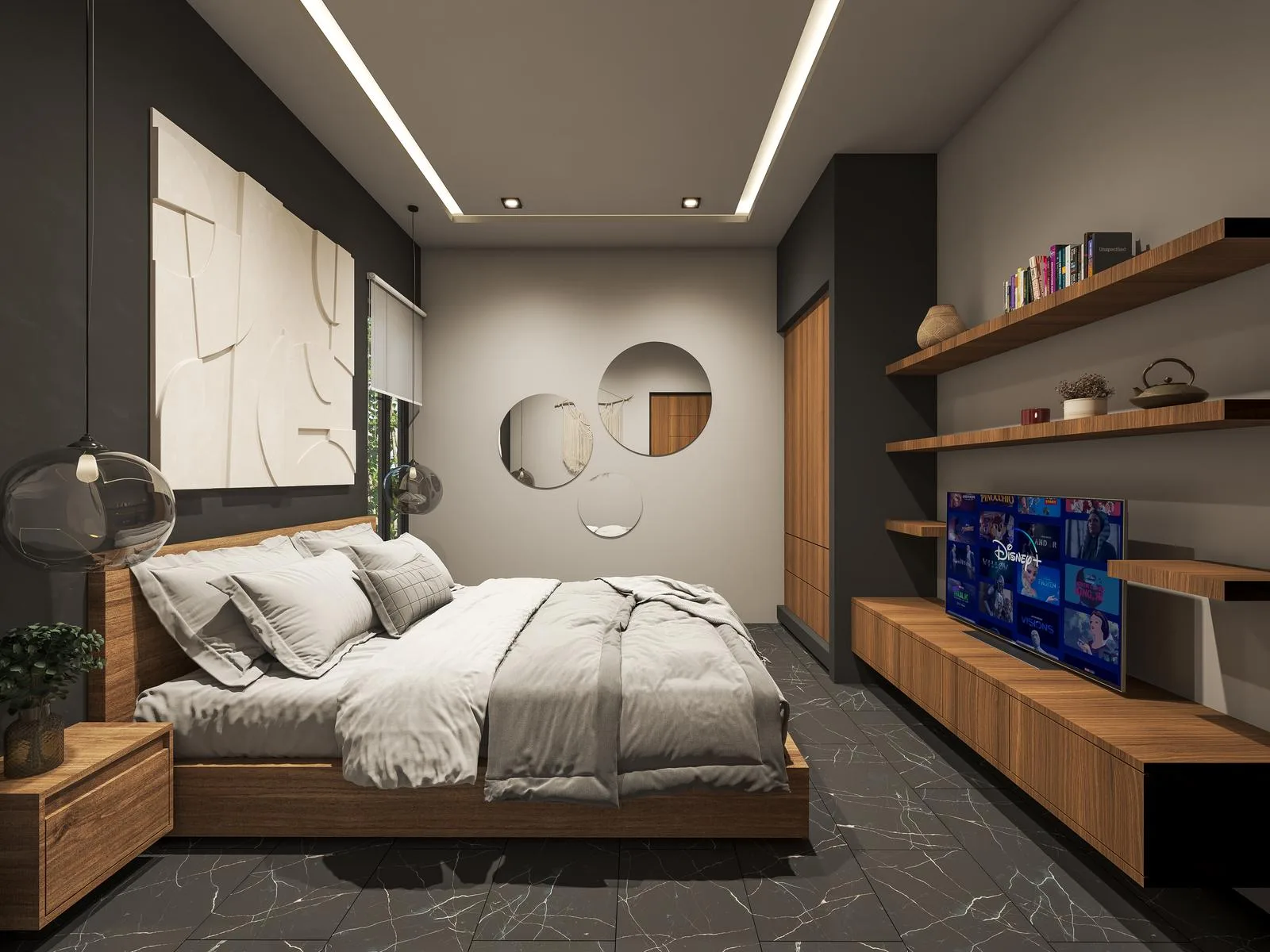The building offers a rooftop with a swimming pool, a sky bar, and a fully equipped gymnasium. Additional building features include a lobby, elevator, and secured parking with controlled access security.