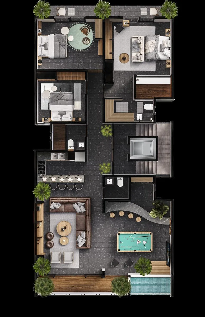This luxury penthouse is designed to offer spaciousness, privacy, and panoramic views of the city and the Caribbean Sea. The residence spans 196. 73 square meters.