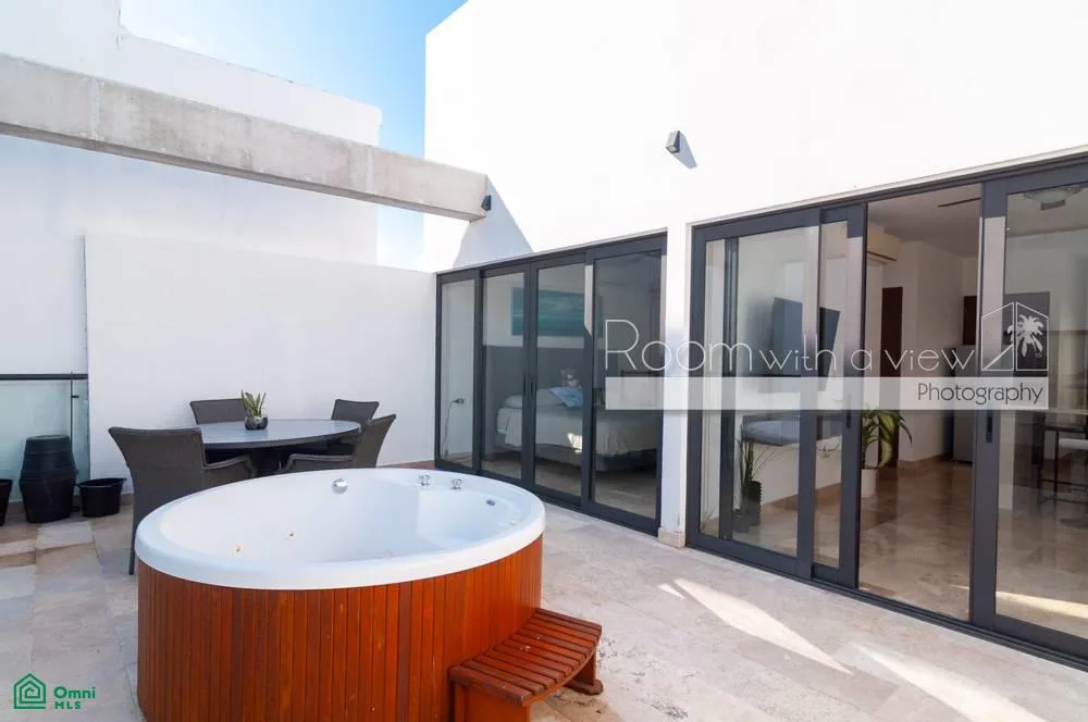 This bright and versatile two-level penthouse features a lockoff design. The property is located just north of downtown Playa del Carmen in the Little Italy neighborhood, steps from 5th Avenue and a short walk to the beach.