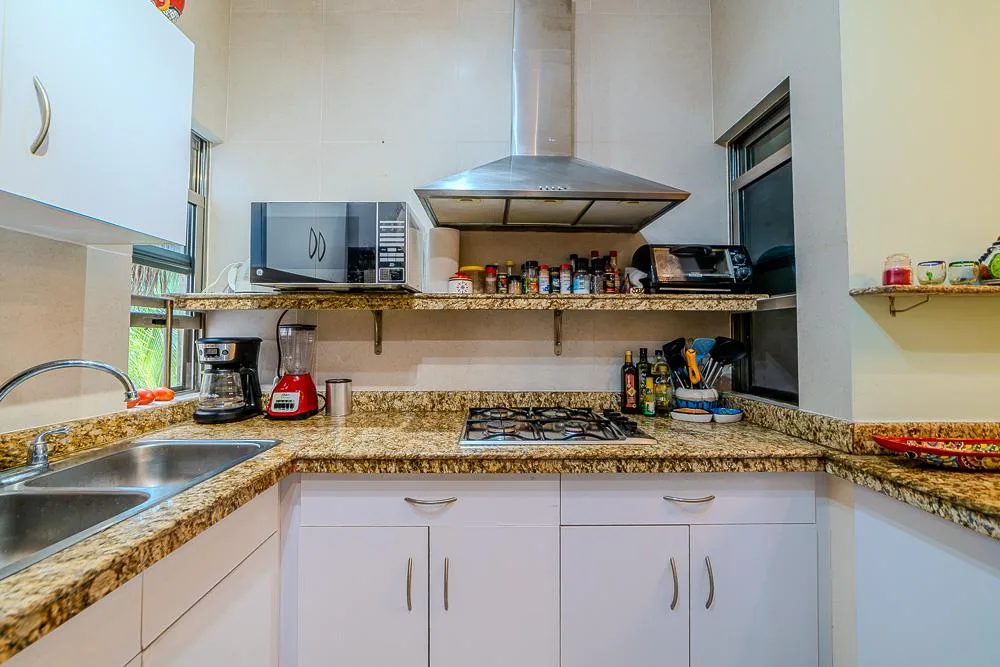 Optical fiber internet serves both the units and the pool area. The building features an incredible pool, a waterfall, and a shaded garden on the ground level for all residents to enjoy. There is a large palapa for entertaining, a barbecue area, and a bar. The condominium association is well-managed. There is excellent 24-hour security and electronic gates controlling all access. The pool area is lively with activity, especially during the season, and generally caters to a middle-aged, international group, so it is never excessively loud. Quiet hours begin after 11 PM.