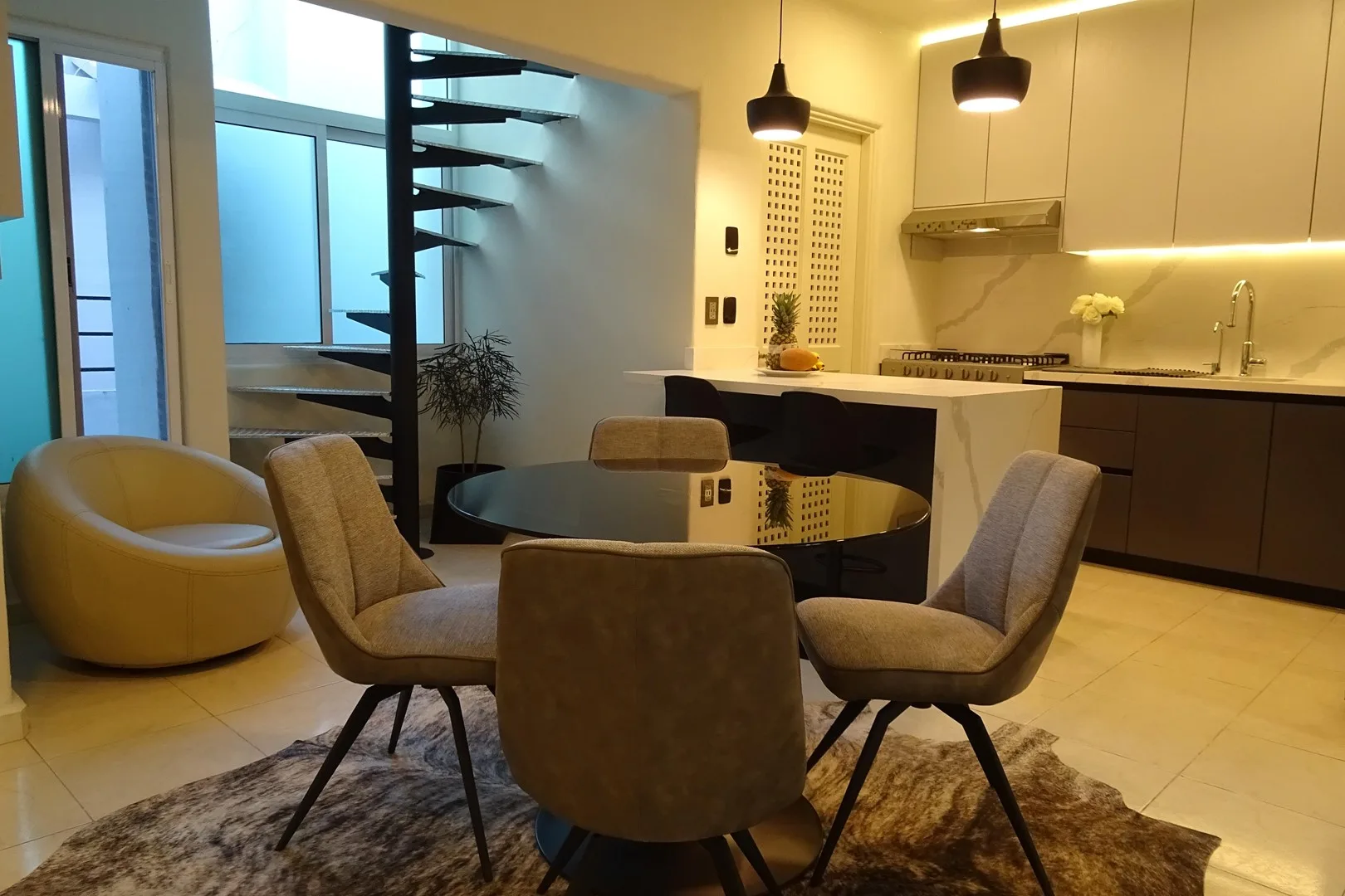 This fully renovated penthouse is ideally located just steps from the pristine beaches of Playa del Carmen. The property blends modern elegance with tropical charm.