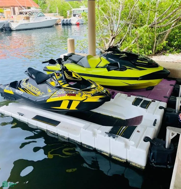 The residence features direct access to the marina canal and includes a private mooring for boats up to 26 feet in length. The layout is spread over two independent levels, combining open social areas with private spaces, and is characterized by clean architectural lines and premium contemporary materials.