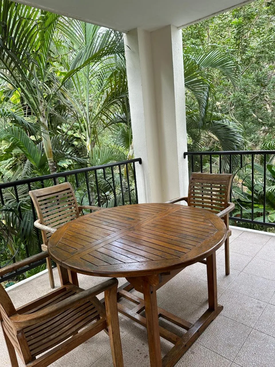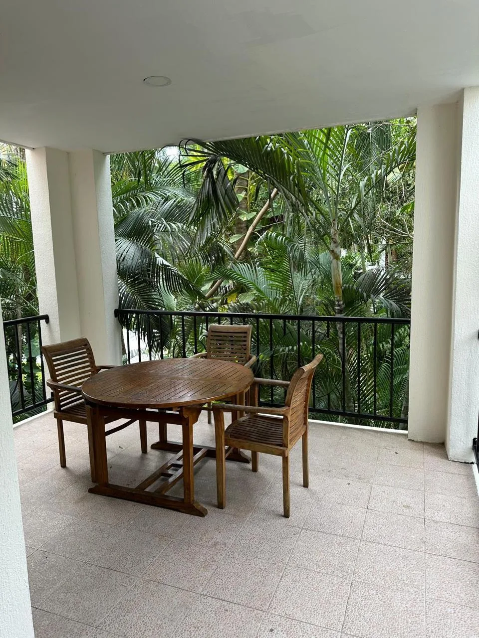 The open-concept living and dining area flows seamlessly to a terrace, which is perfect for enjoying the tropical surroundings. The community features an expansive 100+ meter resort-style pool, a fully equipped gym, tennis courts, 24/7 gated security, and on-site administration and concierge services.