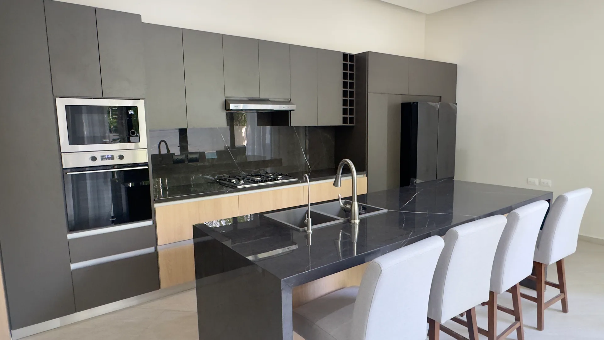 The community is surrounded by nature and features double 24/7 security. Residents have access to a private beach club. The development includes a cenote, gardens, trails, a playground, and courts for tennis, soccer, and basketball. A Montessori school and an express market are located within the complex.