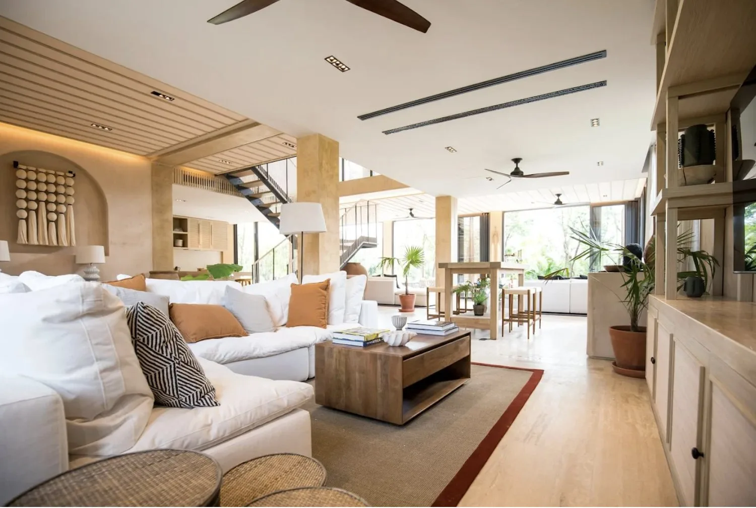 The villa faces the Gran Coyote Golf Course, providing an open view of greenery, a calm environment, and privacy. The residence also includes private beach access and 24-hour security with double access control. Residents have the option to join a Beach & Golf Club.