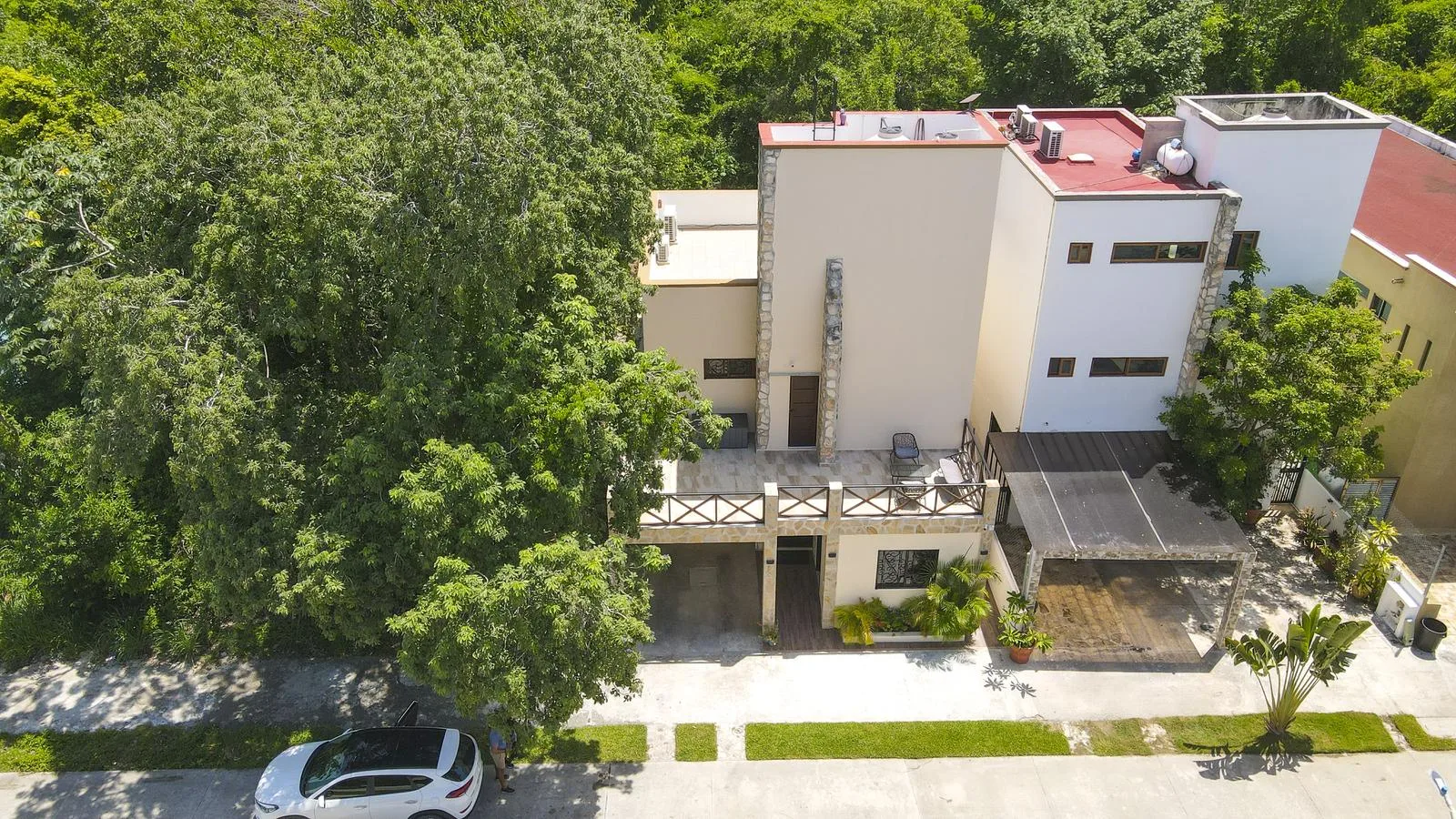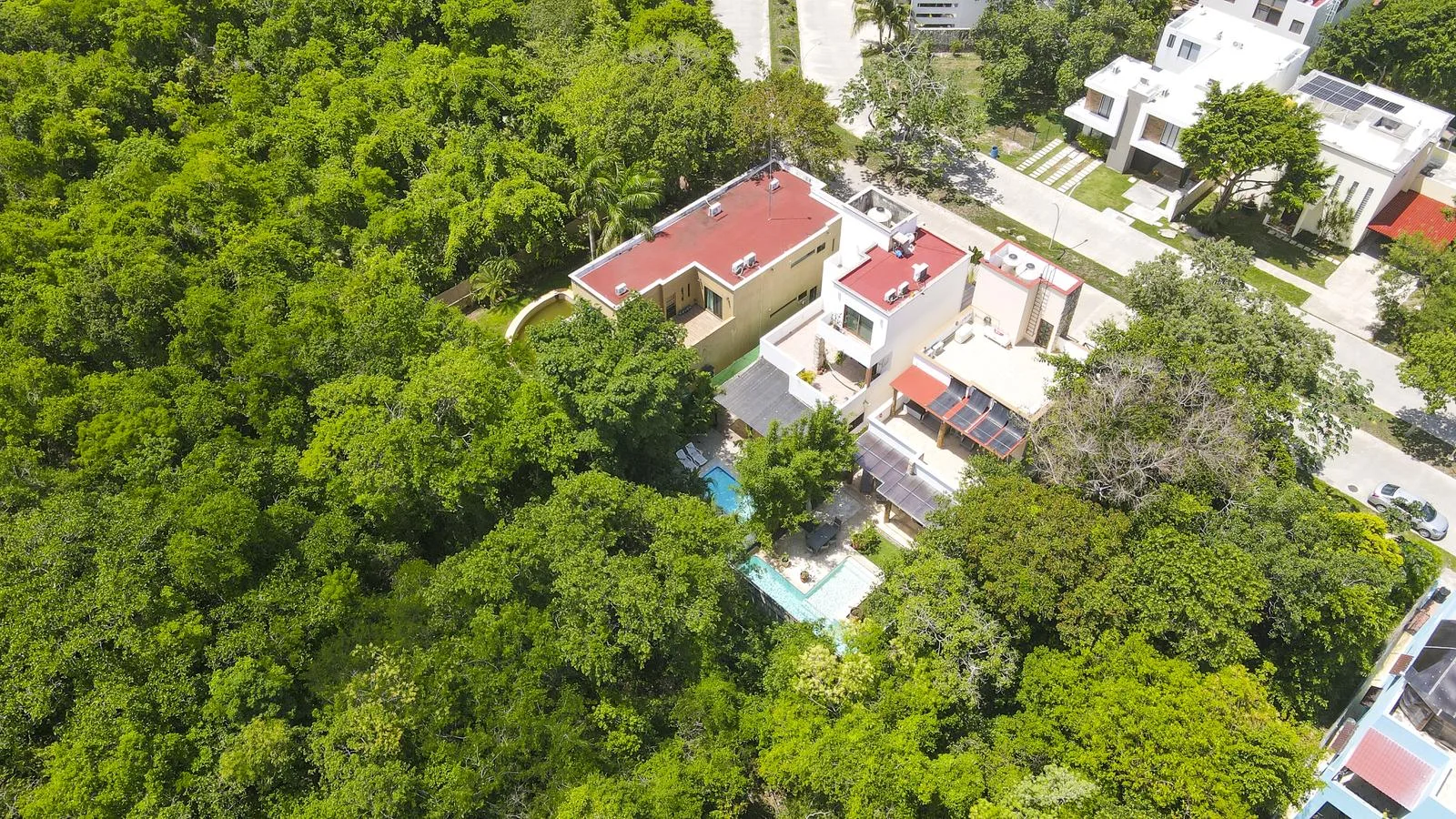 The home is within the El Cielo community, a gated residential area located on the seaside. The neighborhood offers quiet streets, walking paths, and abundant greenery. It is situated approximately 12 minutes from downtown Playa del Carmen and 45 minutes from Cancun International Airport. The certified Blue Flag beach of Xcalacoco is approximately 2 kilometers (1. 3 miles) away.