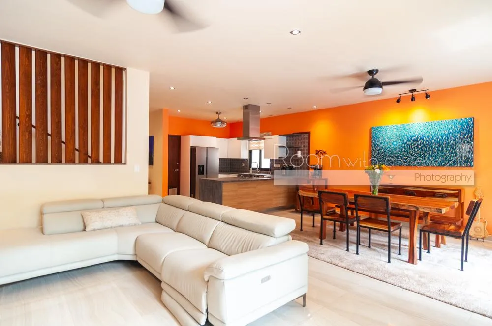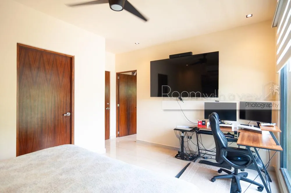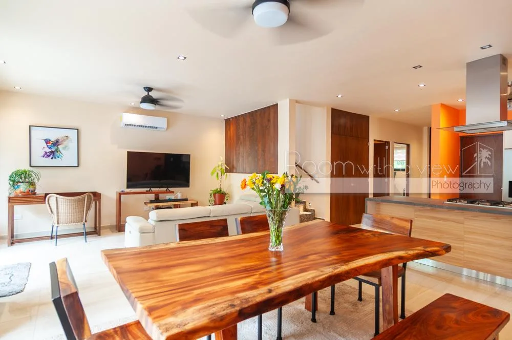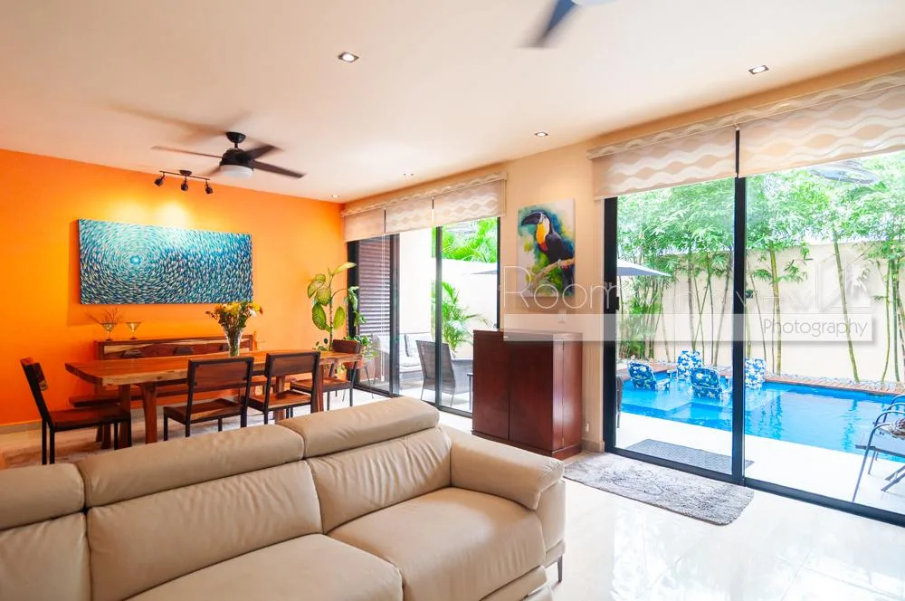This villa is situated in El Cielo, a secure gated community near Playa del Carmen. The location offers proximity to beaches, beach clubs, and golf courses, and is approximately 30 minutes from the airport. The property provides privacy while being close to town services.
