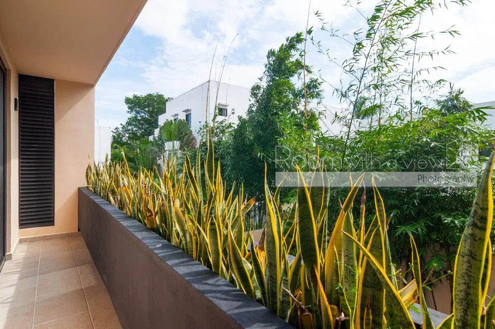 The villa features a spacious open layout filled with natural light. It includes three bedrooms and two and a half bathrooms. The home has a fully equipped kitchen with premium appliances and high-quality finishes throughout and is furnished.