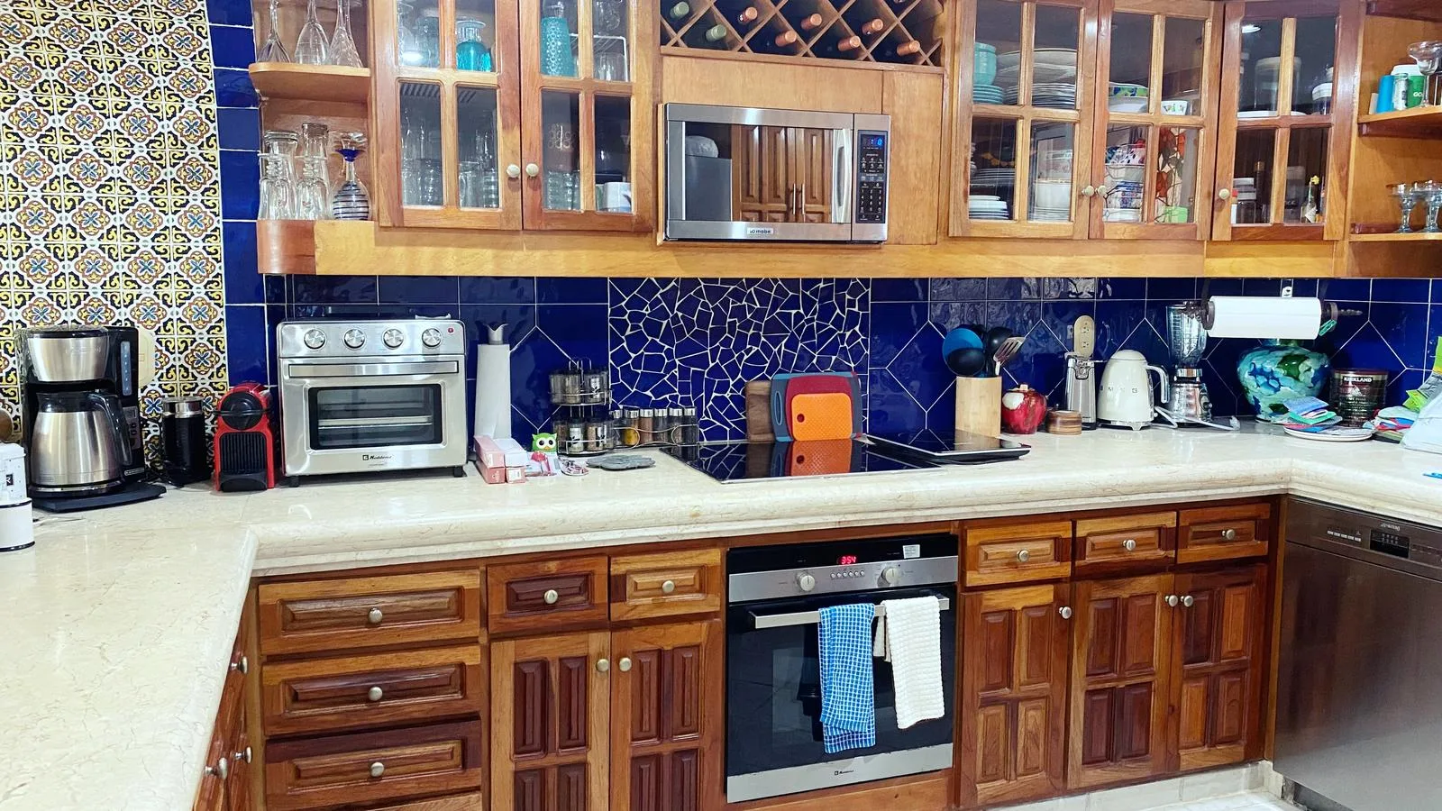 The terrace is designed for entertaining, with space for a dining and living area, built-in cabinets, and a tiled bar area with a ready-to-use grill space. Every detail has been carefully designed to blend modernity with local charm.