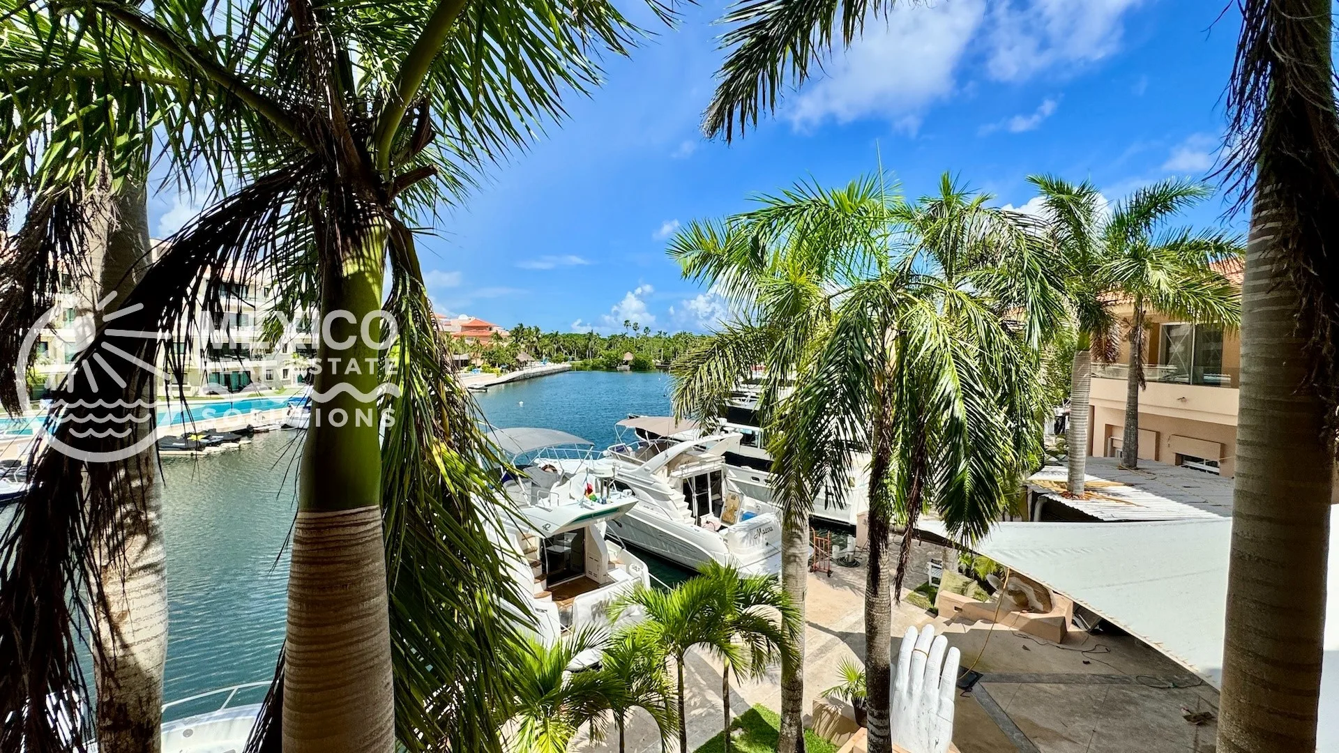 This canal-facing, fully furnished one-bedroom condo is located in the heart of Puerto Aventuras, a gated community in the Riviera Maya. The property is situated on the second floor of the boutique Gran Marina complex, offering views over the tranquil marina canals.