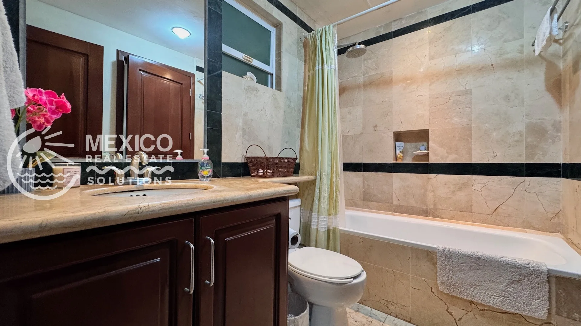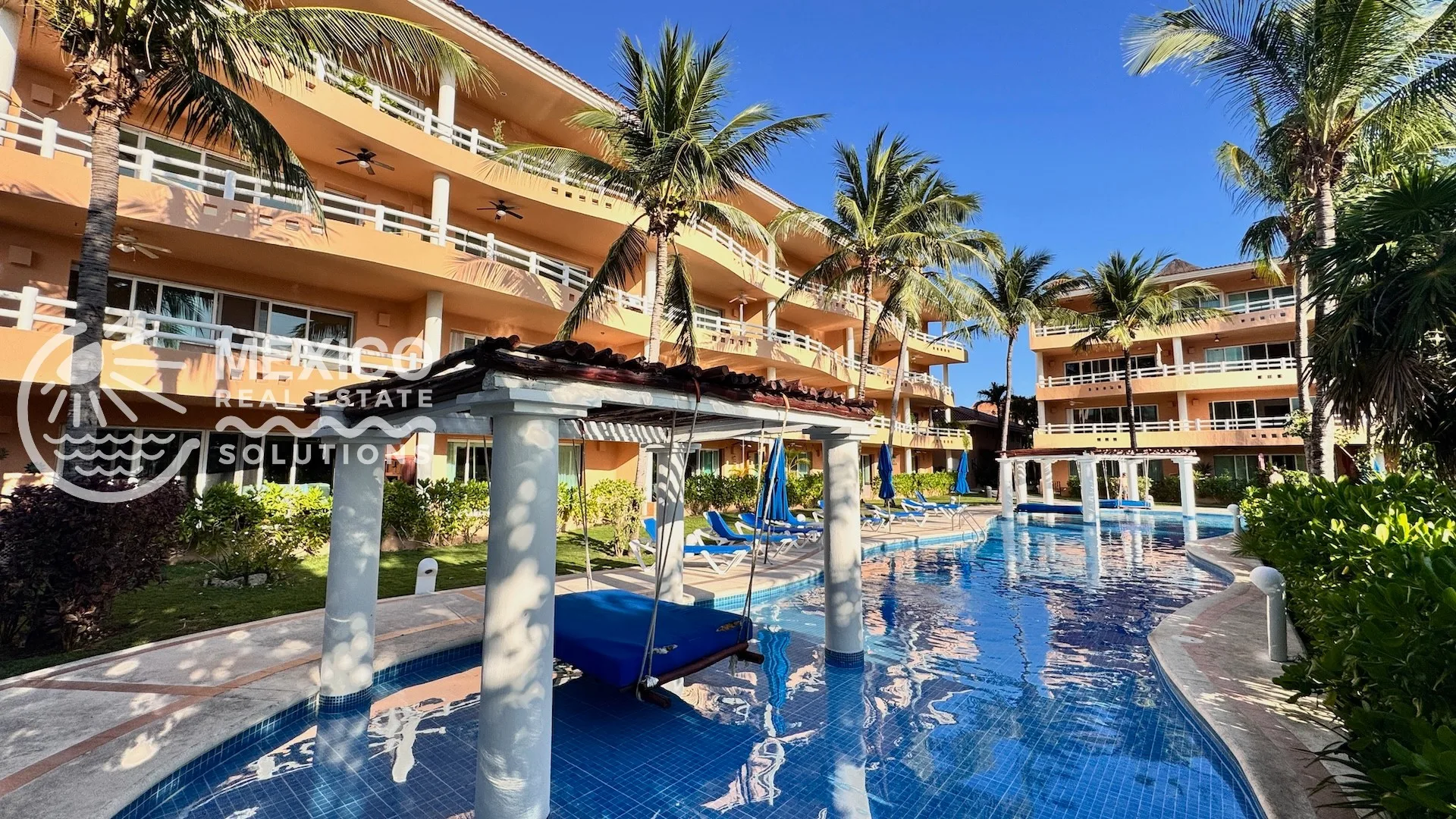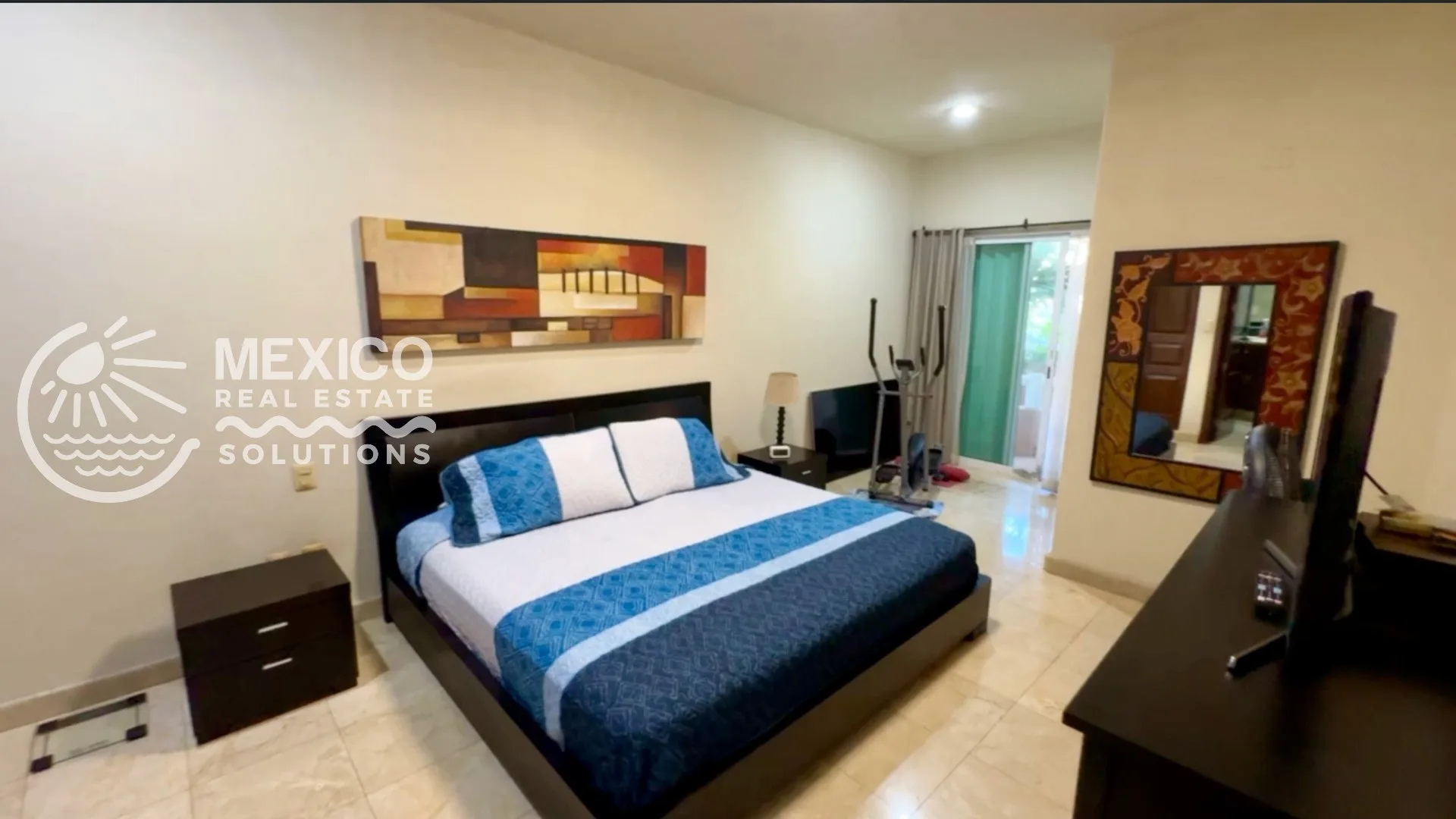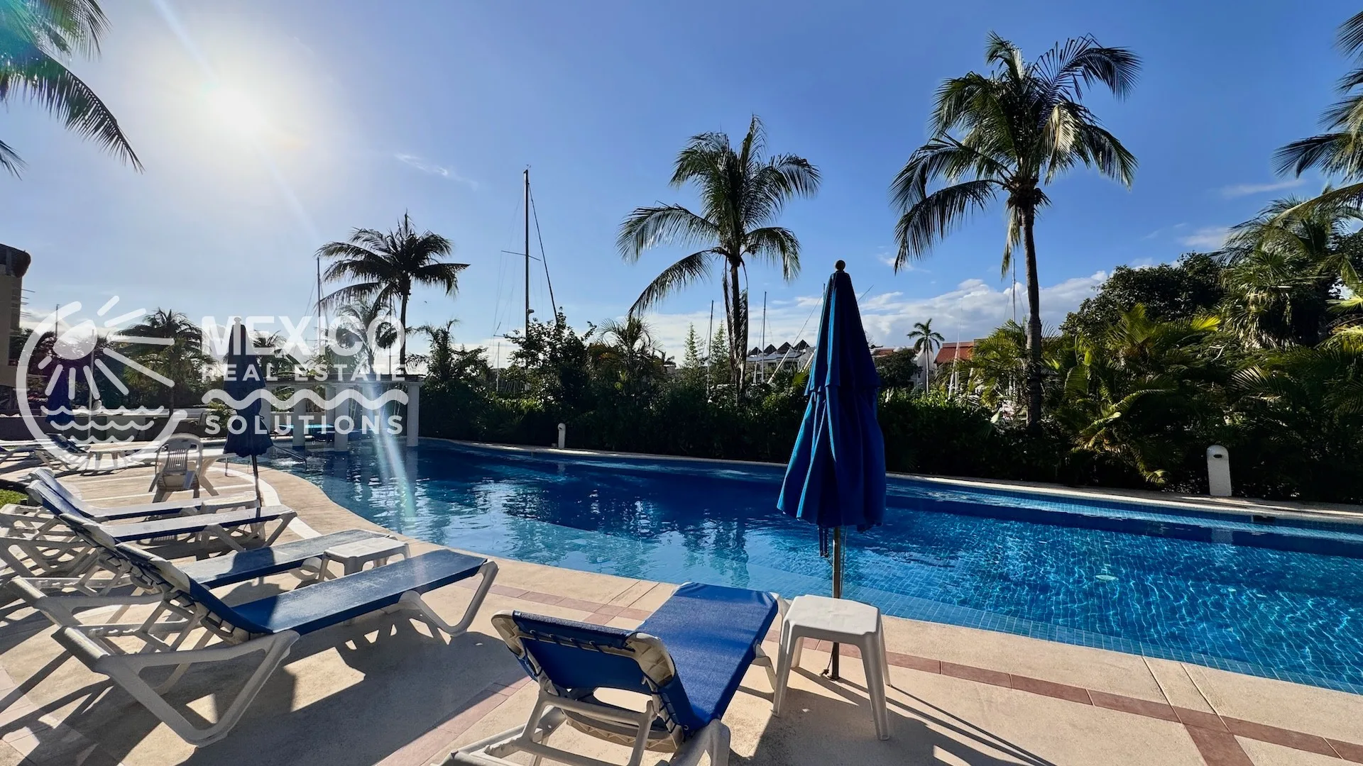 The condominium is located in Puerto Aventuras, a planned community built around a full-service marina with private beaches and a 9-hole golf course. The community offers walkability, 24/7 security, tennis courts, bilingual schools, cafes, and restaurants. It is conveniently situated between Playa del Carmen and Tulum.