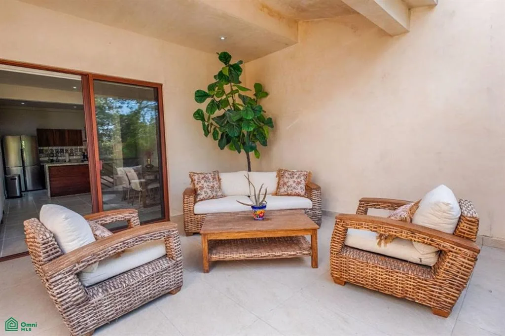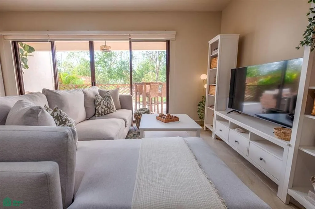 Located amidst lush green vegetation, this two-bedroom, two-bathroom condo offers a comfortable retreat with sunny interiors and appealing indoor and outdoor spaces. It is situated within a secure, gated community known for its early-closing restaurants and strict noise rules, ensuring peaceful evenings. The ground-floor unit features a thoughtfully designed layout with no stairs and provides direct access to the pool, simplifying daily living and guest stays.