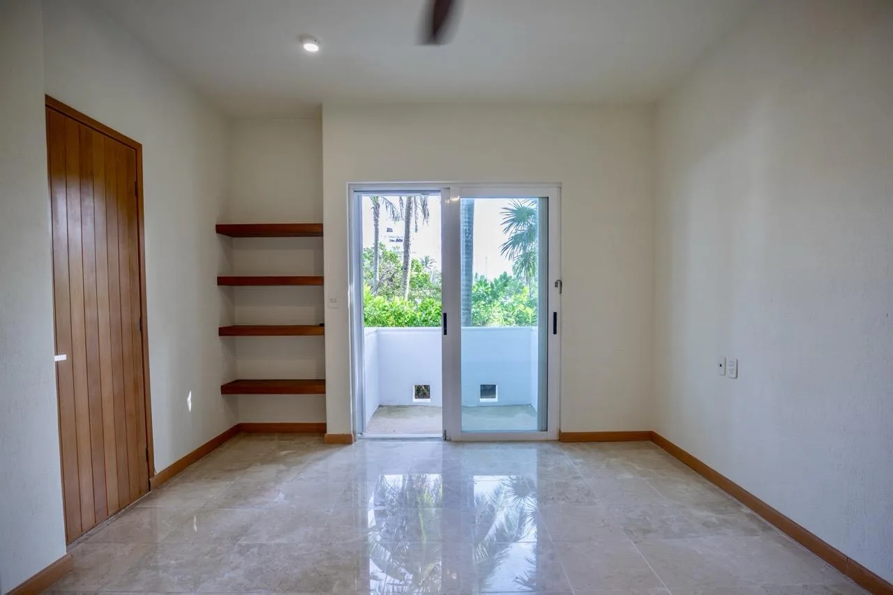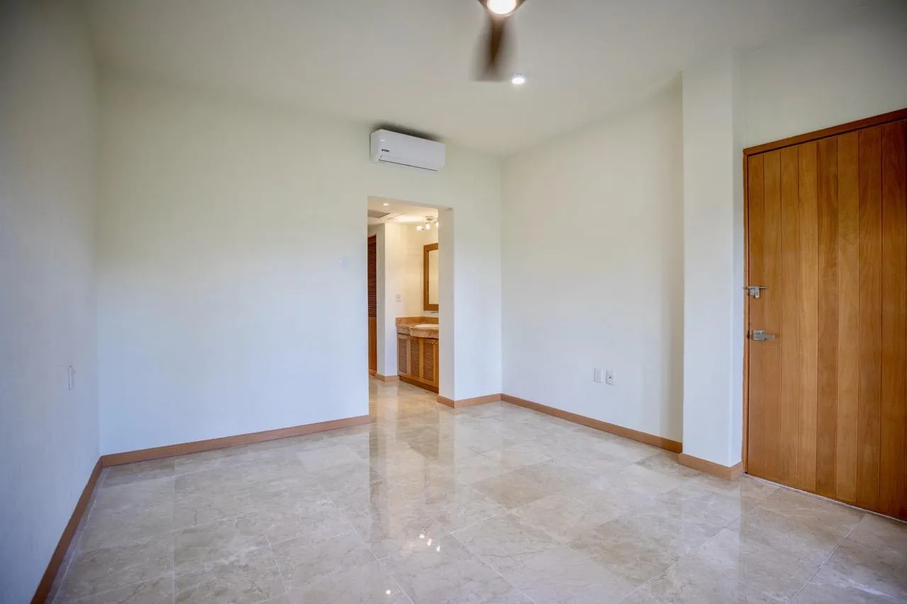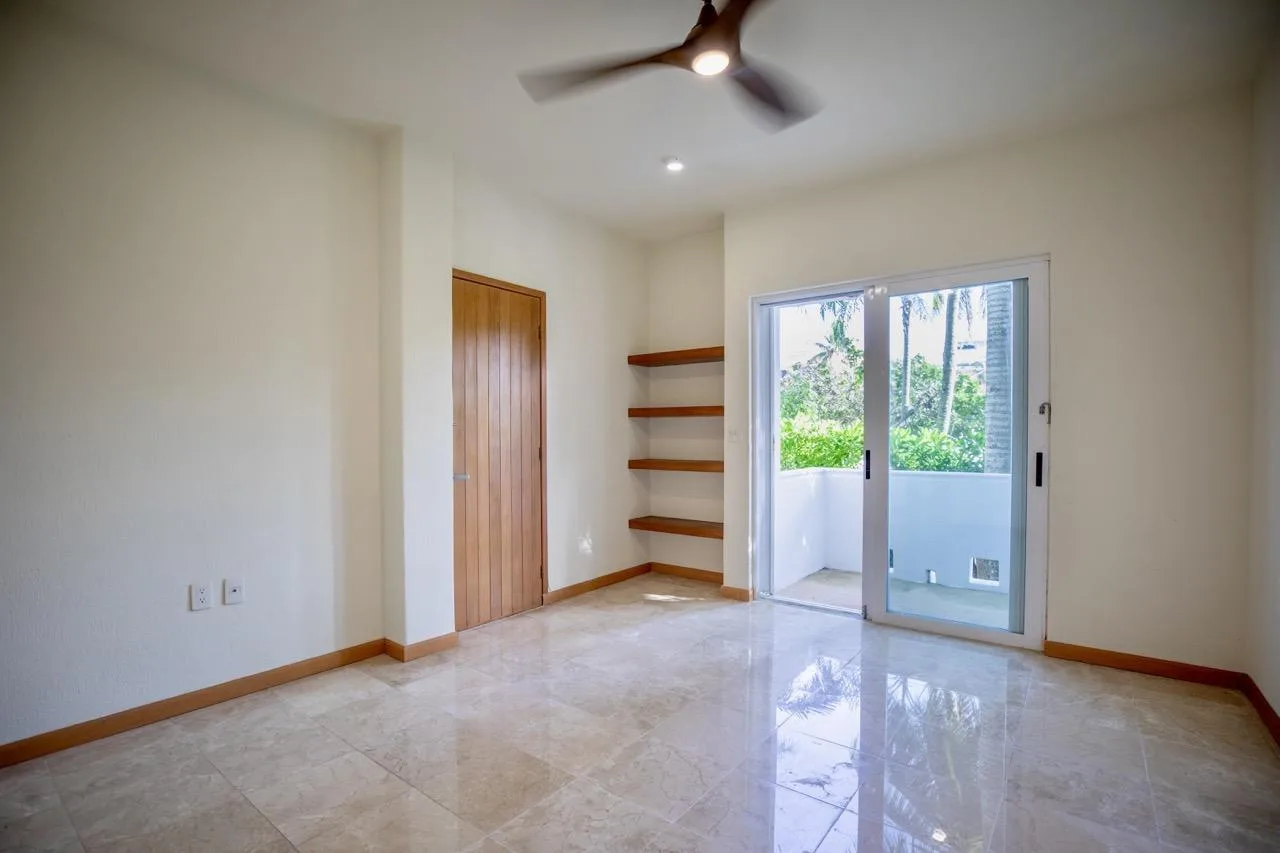 Residents have access to shared amenities including a swimming pool, tropical gardens, and private beach access. The community features 24-hour security. It is a tranquil and secure area with convenient access to the Puerto Aventuras golf course, tennis courts, restaurants, shops, and the main beach.