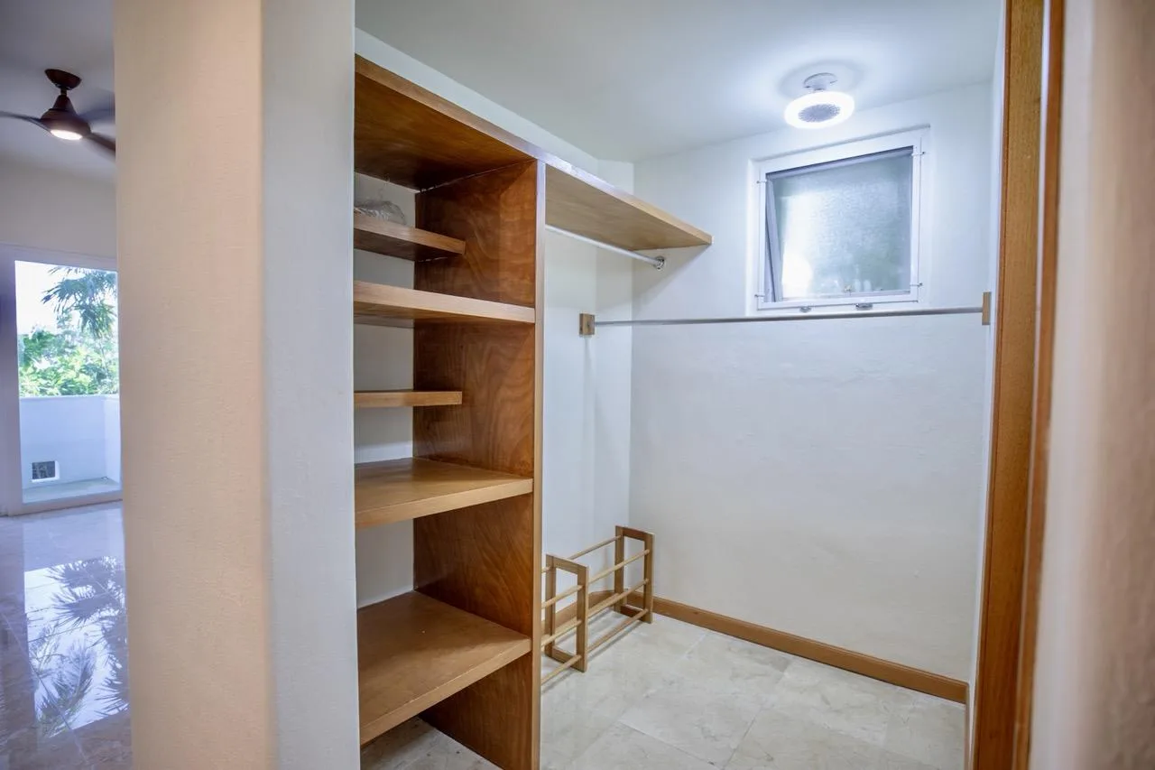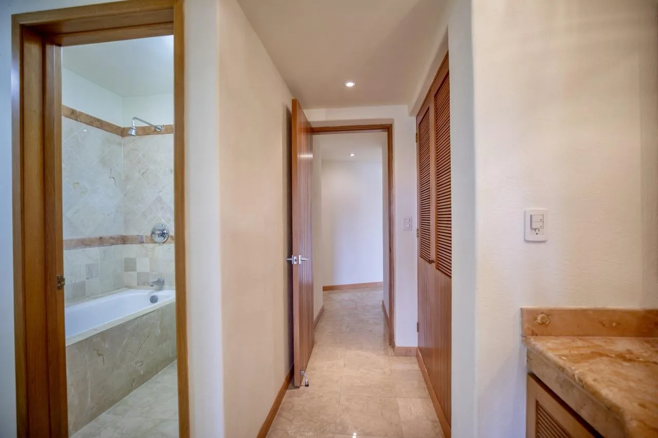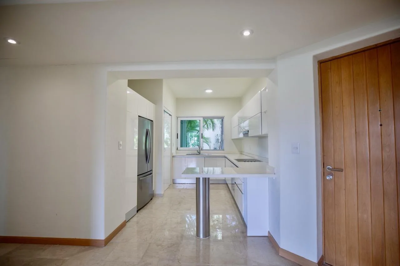 Residents have access to shared amenities including a swimming pool, tropical gardens, and private beach access. The community features 24-hour security. It is a tranquil and secure area with convenient access to the Puerto Aventuras golf course, tennis courts, restaurants, shops, and the main beach.