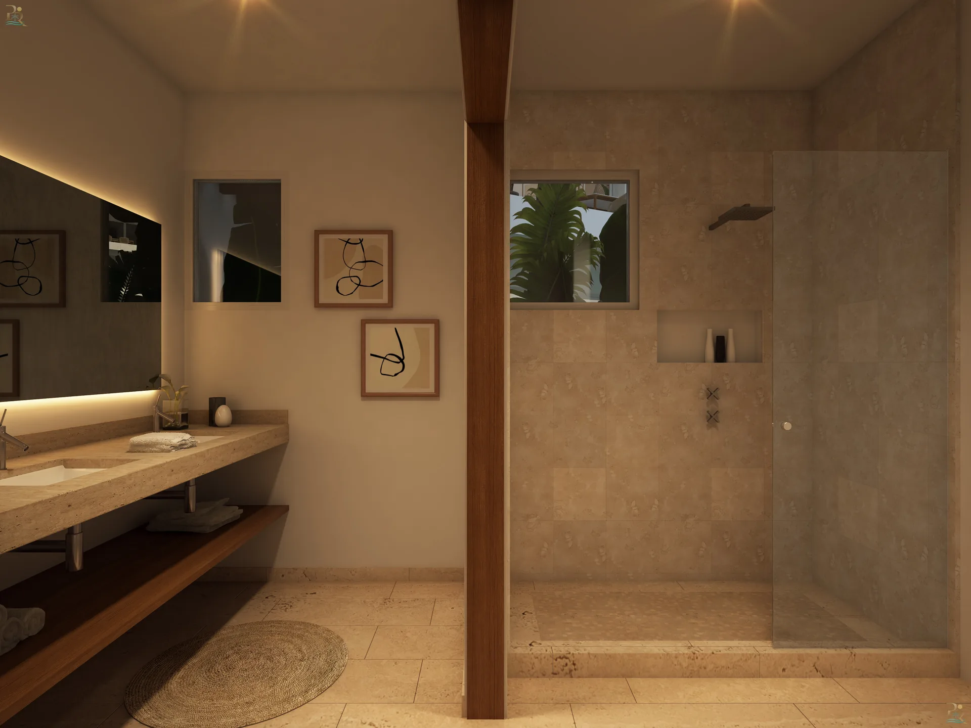 Each unit contains carefully selected high-quality materials and modern designer elements. These include a high-gloss MDF kitchen with quartz countertops, faucets by Helvex or similar, appliances by TEKA or equivalent, cabinets and doors made of tzalam wood (or similar), white PVC windows, and energy-efficient mini split inverter air conditioning systems.