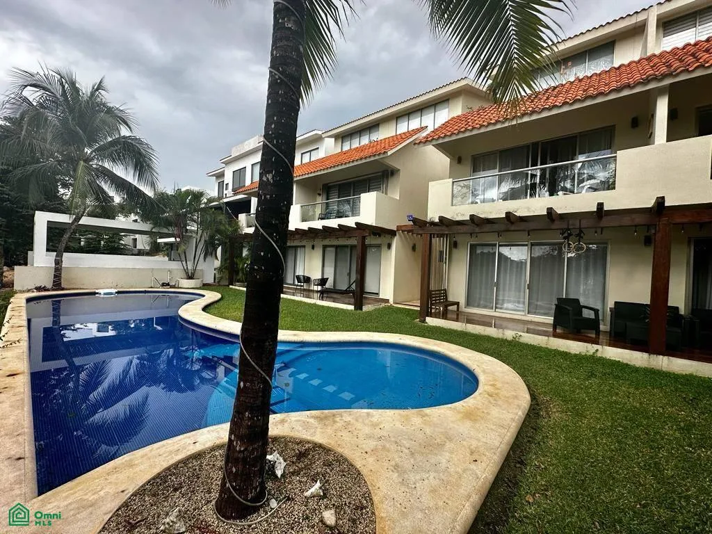 This spacious and immaculate end-unit condo is situated on the golf course within the gated marina town of Puerto Aventuras. It offers 140 square meters of living space.