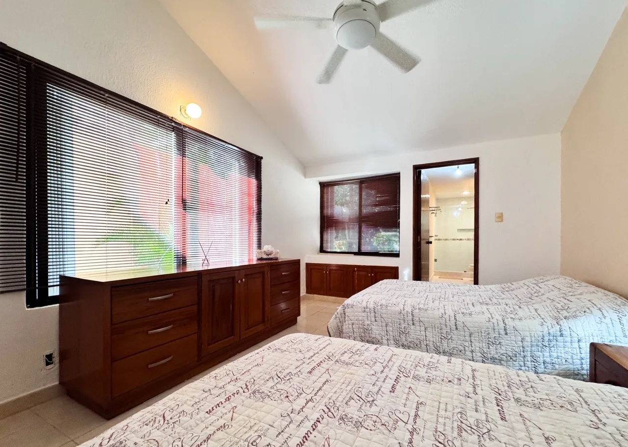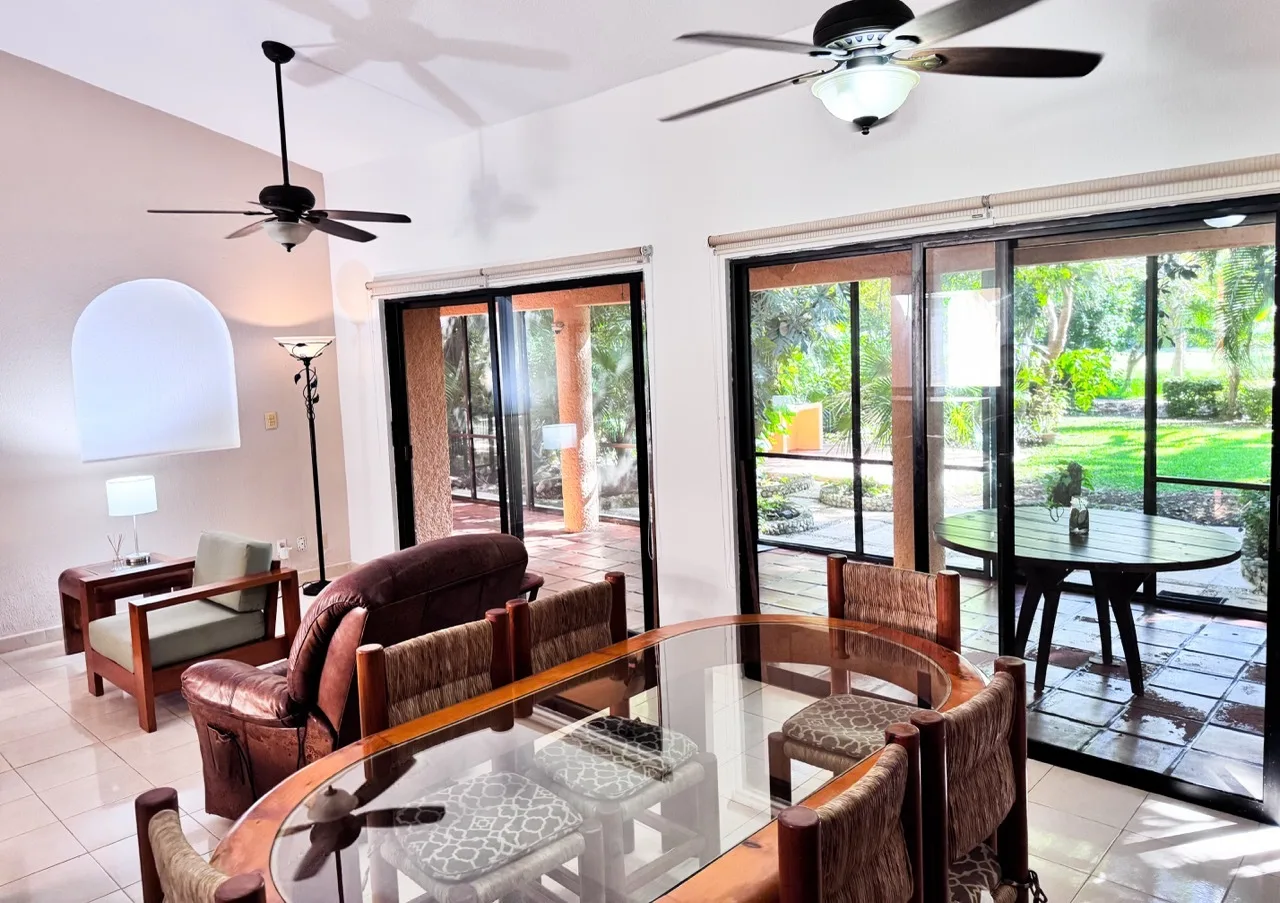 This fully furnished 3-bedroom home is located within the secure, gated community of Puerto Aventuras in the Riviera Maya. The property offers direct views of the golf course from its backyard and features a highly functional layout.