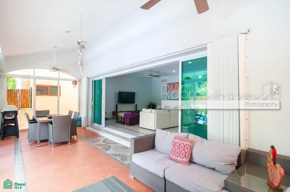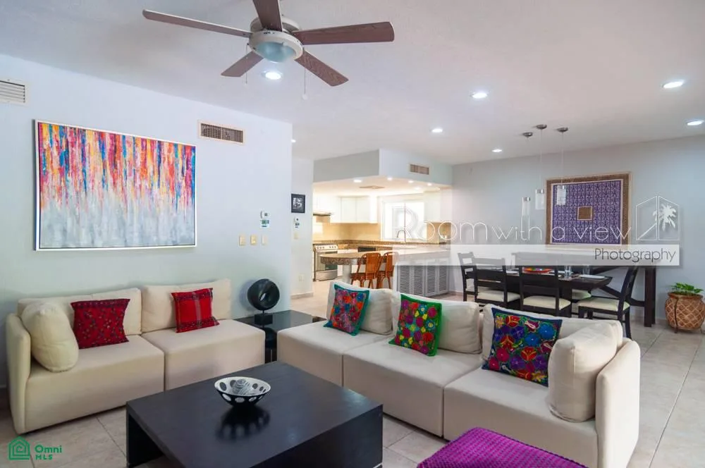 The home is set within the secure, gated community of Puerto Aventuras, which offers a peaceful atmosphere and access to a wide range of amenities. These include golf, tennis, yoga, sailing, snorkeling, and deep-sea fishing. A walkable selection of shops and restaurants adds convenience, and noise regulations ensure a tranquil environment.