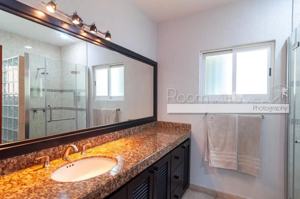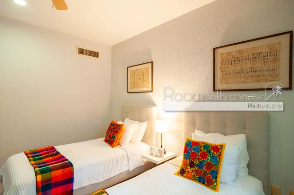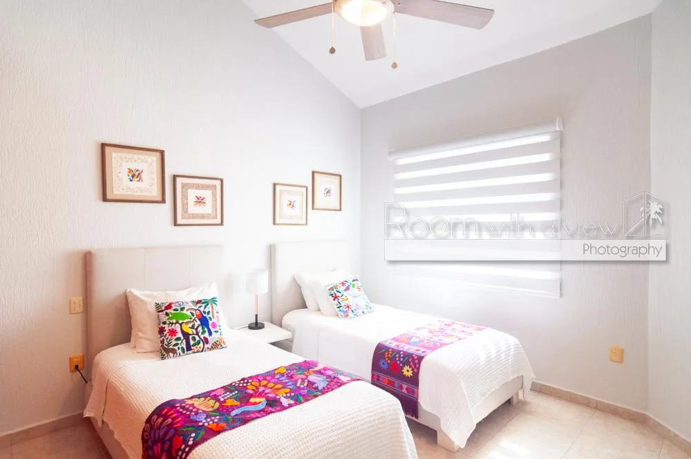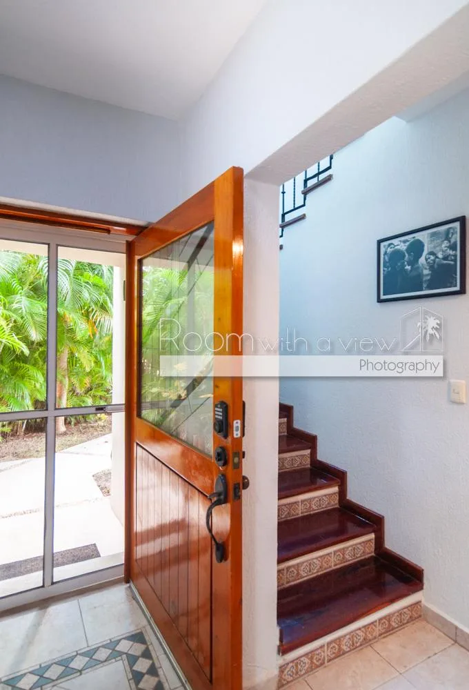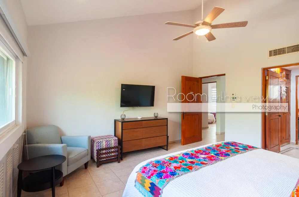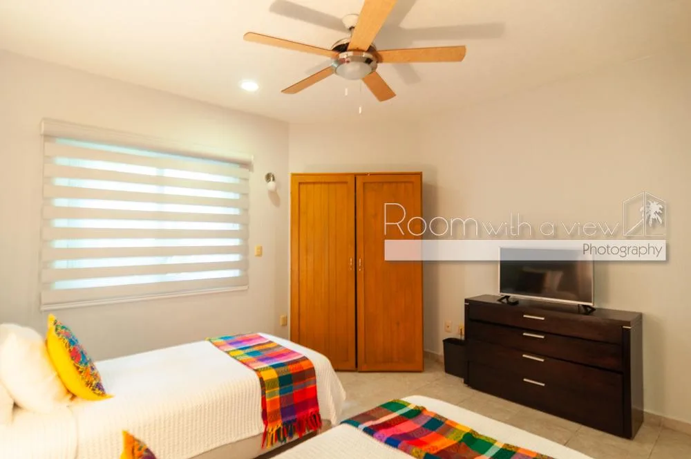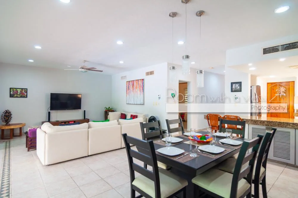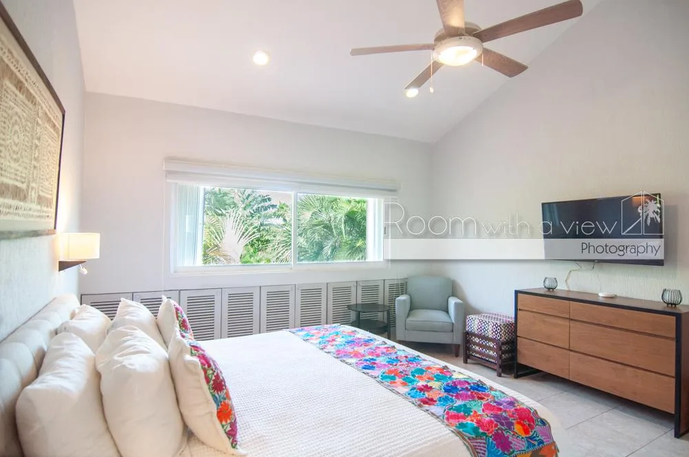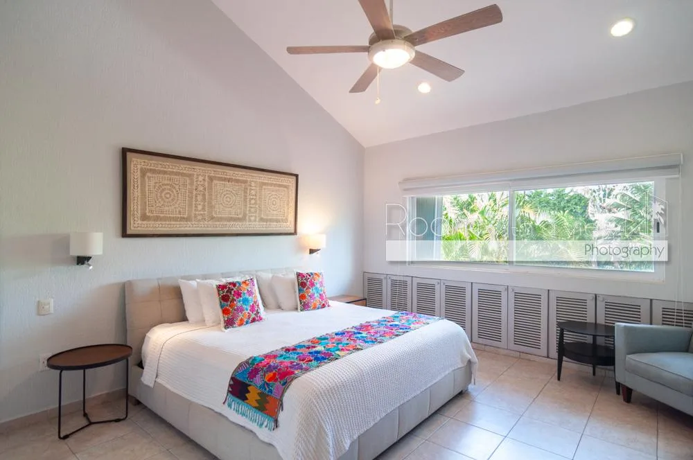 The property is located within a secure, gated community in Puerto Aventuras, offering a peaceful atmosphere and access to resort-style amenities including golf, tennis, yoga, sailing, snorkeling, and deep-sea fishing. A walkable selection of shops and restaurants adds convenience, while strict noise regulations ensure quiet days and serene evenings. The beach is just minutes away.