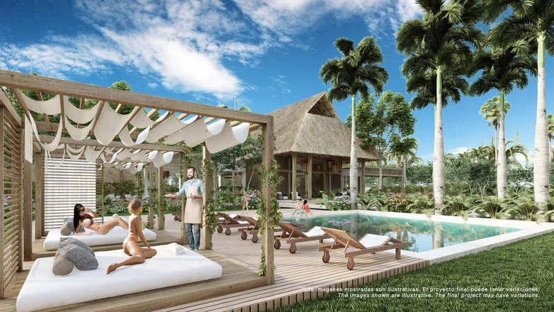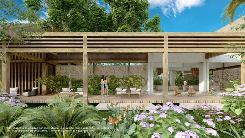 This development is situated near Puerto Aventuras and Xpu Ha and features large lots exceeding 600 square meters. The property offers resort-style amenities and views of the surrounding jungle.