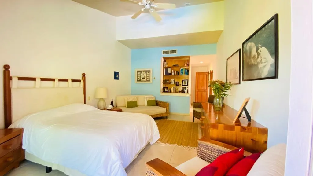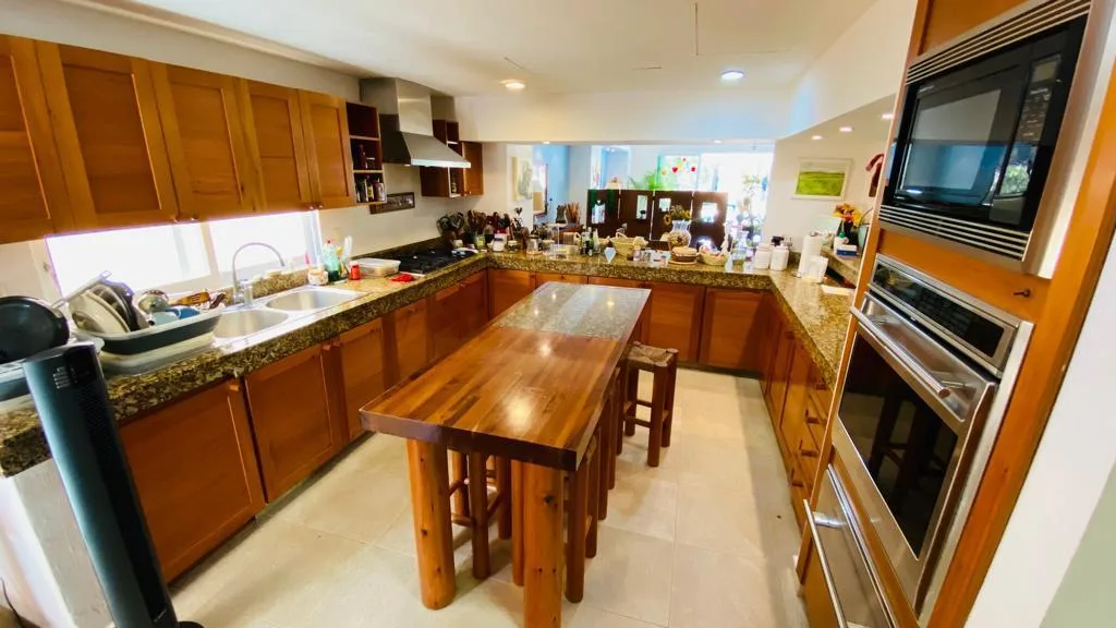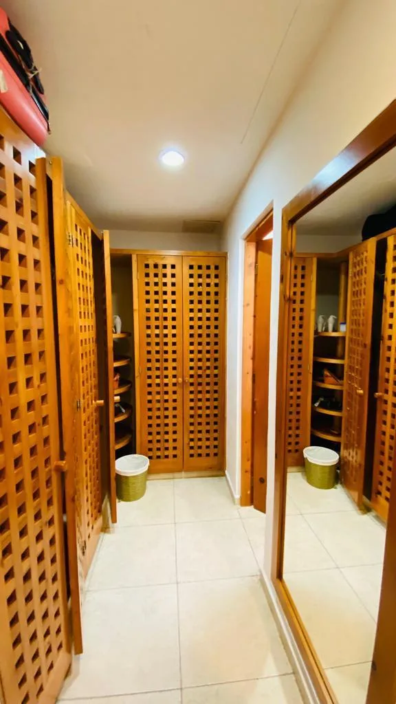 The kitchen is fully equipped with an independent pantry. A separate family television room is also provided. The primary bedroom includes a private terrace with marina views, walk-in closets, and a full bathroom with a Jacuzzi and steam bath. A second bedroom faces the marina with its own balcony, a walk-in closet, and a full bathroom. The third bedroom also faces the marina with a private balcony, a walk-in closet, and a full bathroom. A fourth bedroom faces the avenue and includes a walk-in closet and a full bathroom.