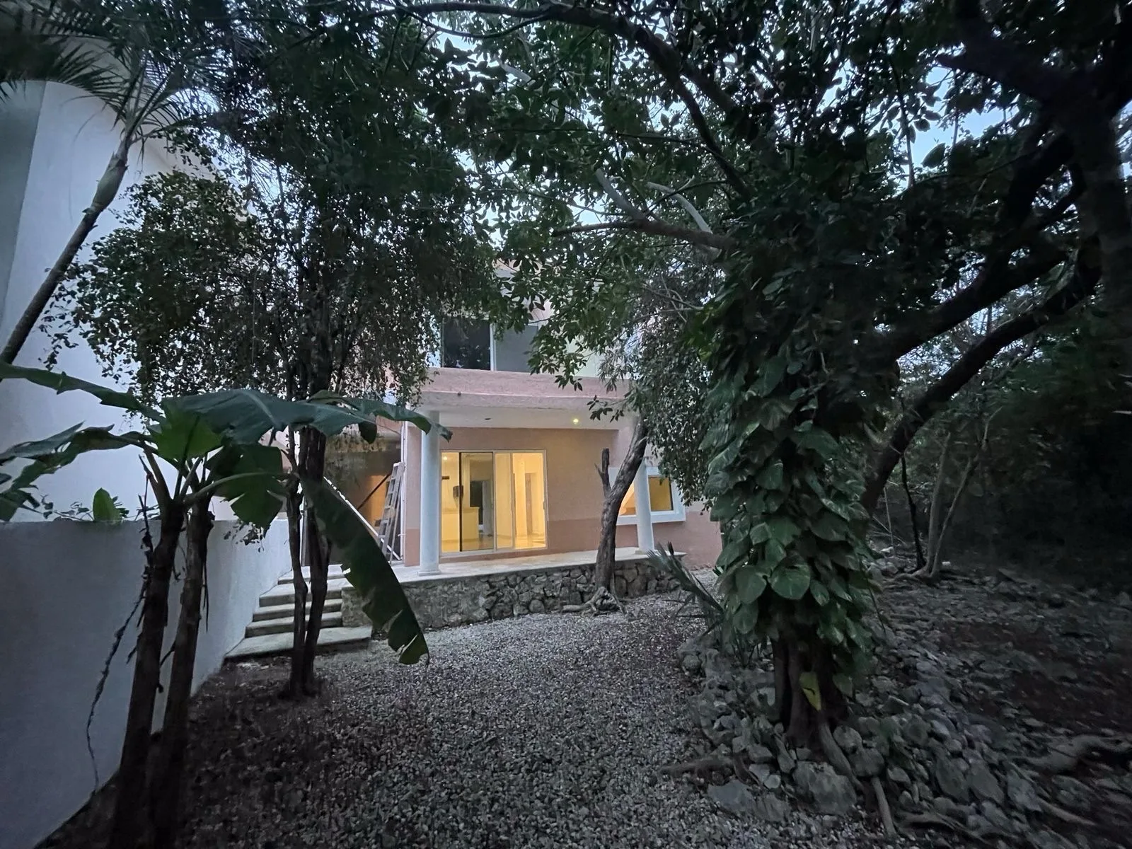 This spacious house for sale is located on Calle Bahia Chemuyil, surrounded by trees and adjacent to the golf course. The home features four bedrooms and four full bathrooms.