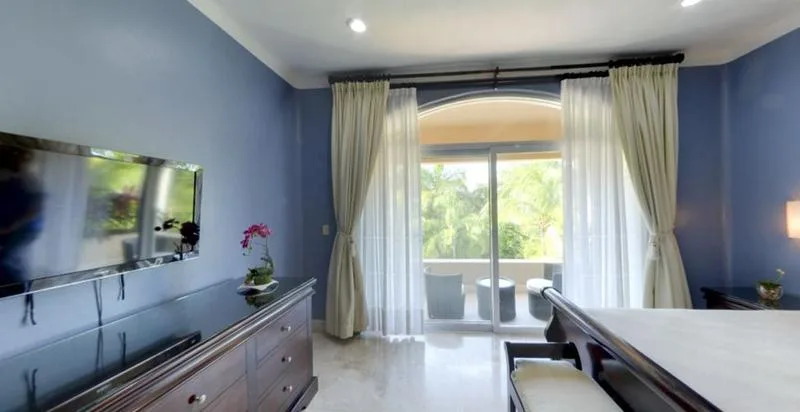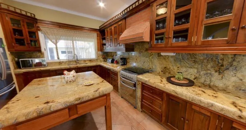 This house features direct access to a golf course and benefits from 24-hour, year-round security. The property includes a service quarters with a small kitchenette and a full bathroom.