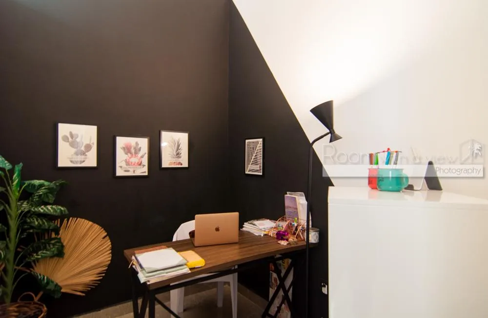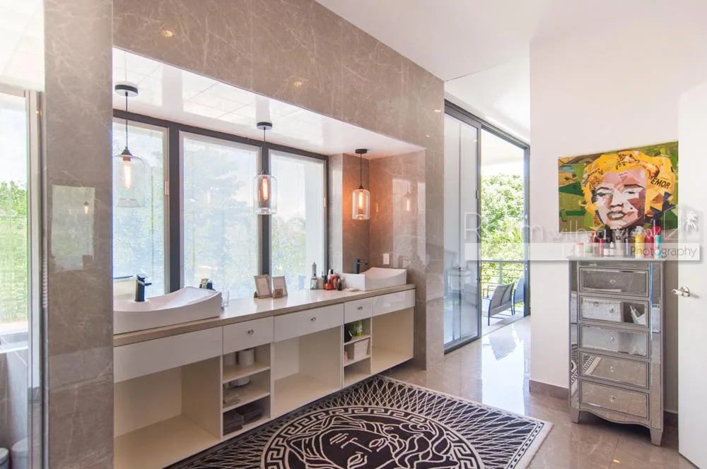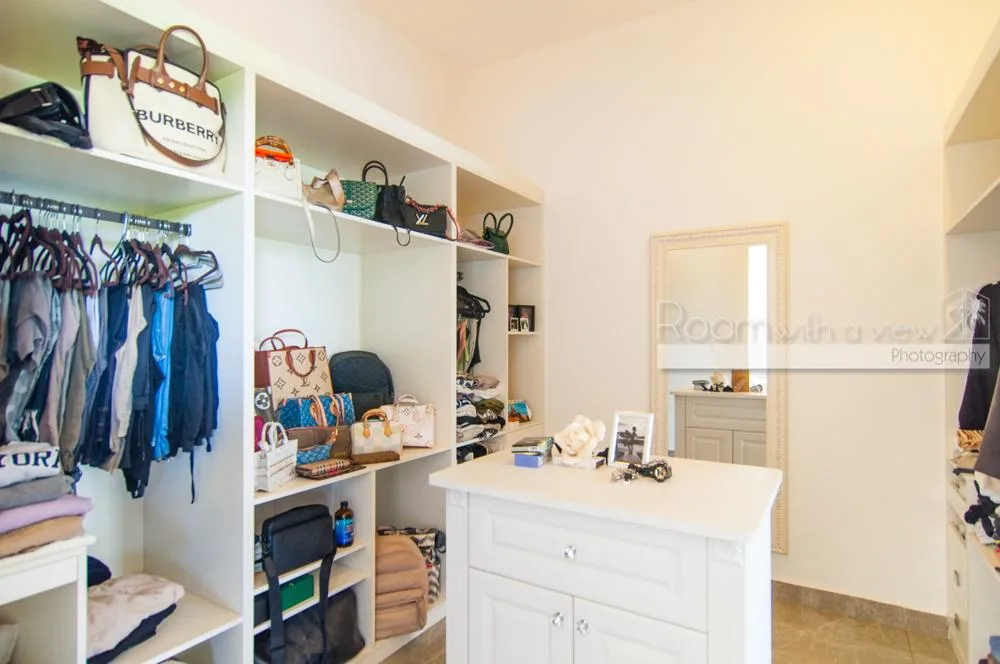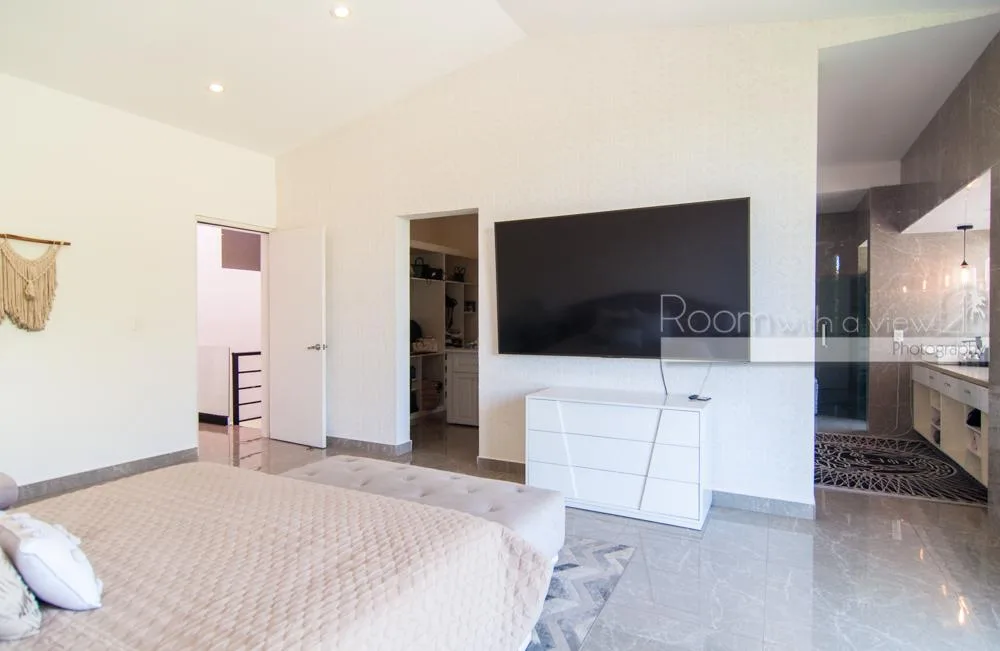 The primary suite includes a private balcony, a walk-in closet, and an en suite bathroom. The property is fully walled for privacy and security.