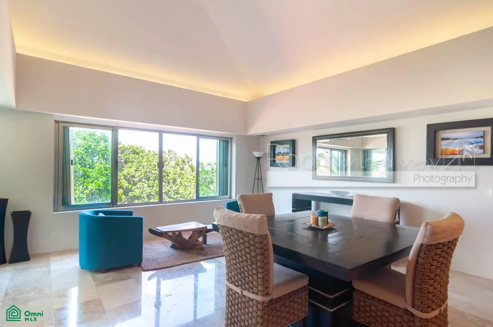 This stunning penthouse offers sparkling marina and ocean views from the heart of Puerto Aventuras, a gated resort community in the Riviera Maya. The residence features two bedrooms and three bathrooms.