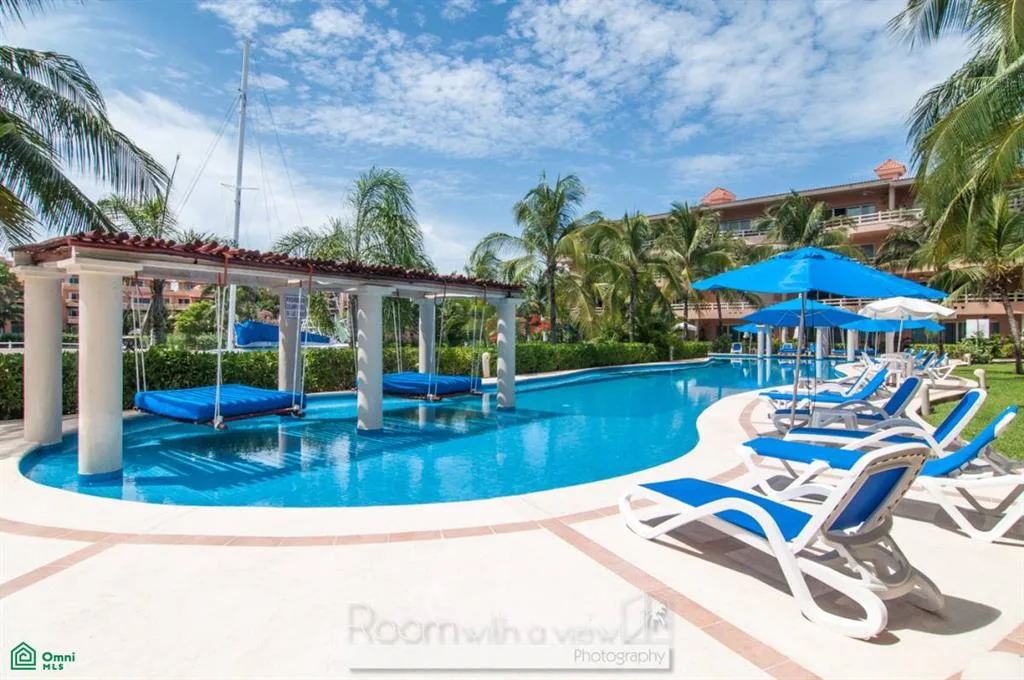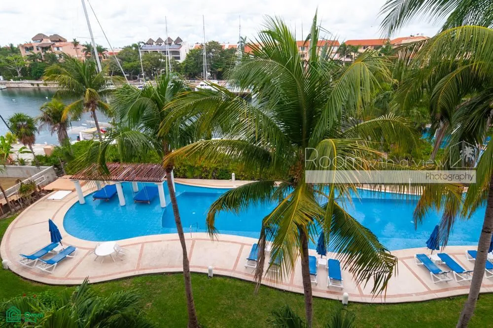 This Portofino penthouse offers ocean and marina views from its spacious balcony and private rooftop terrace, which includes a jacuzzi. The property is situated in Marina Puerto Aventuras, a gated seaside community.