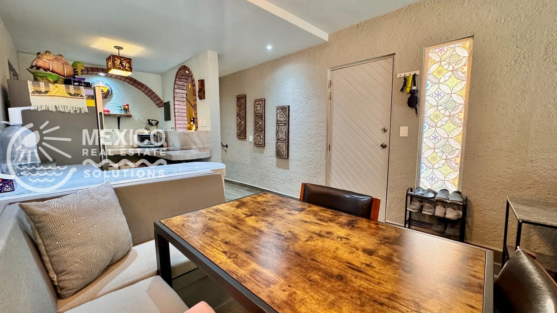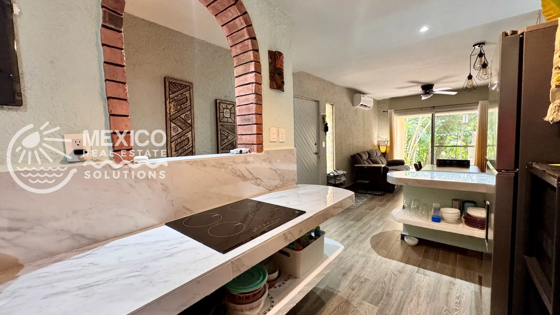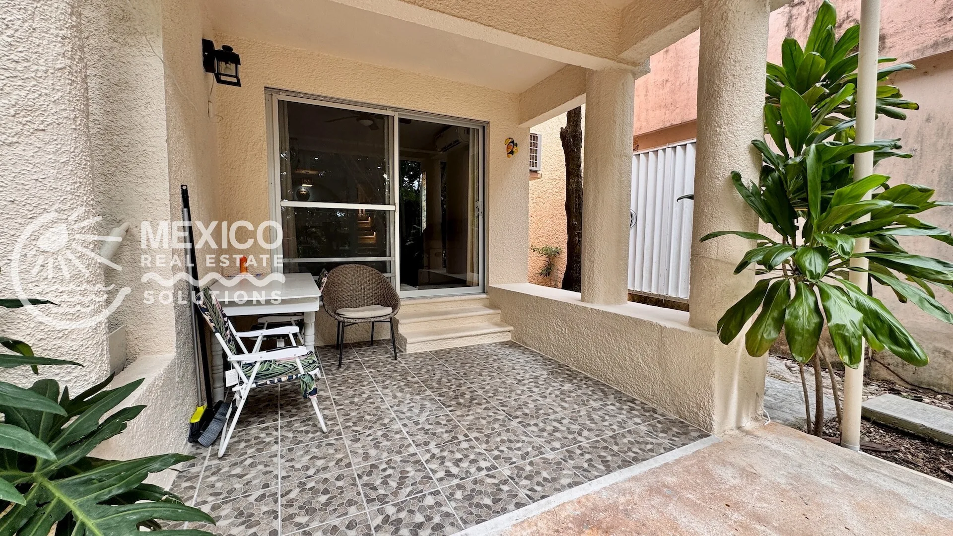 This charming 2-bedroom, 2-bathroom townhome is fully furnished and ready for immediate occupancy. It is located in a gated community within Puerto Aventuras. The property features a private covered terrace that faces a peaceful par-3 golf course.