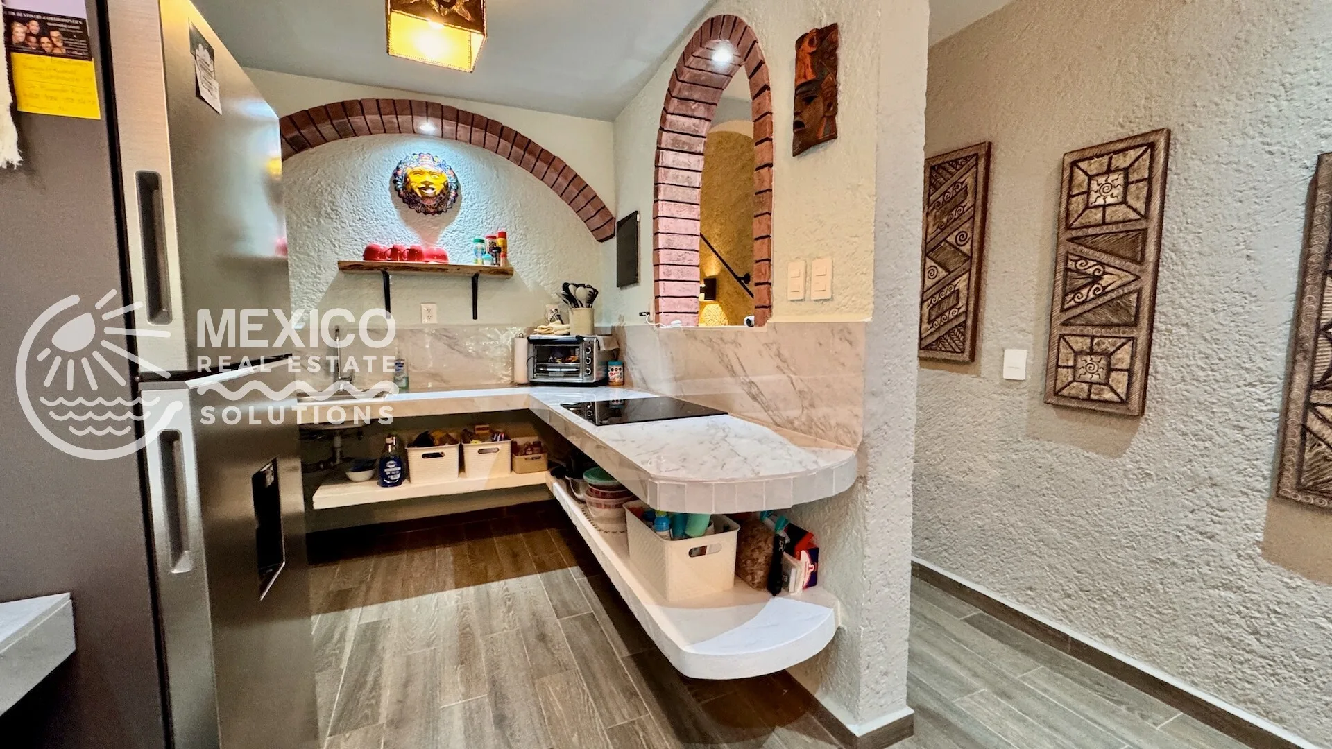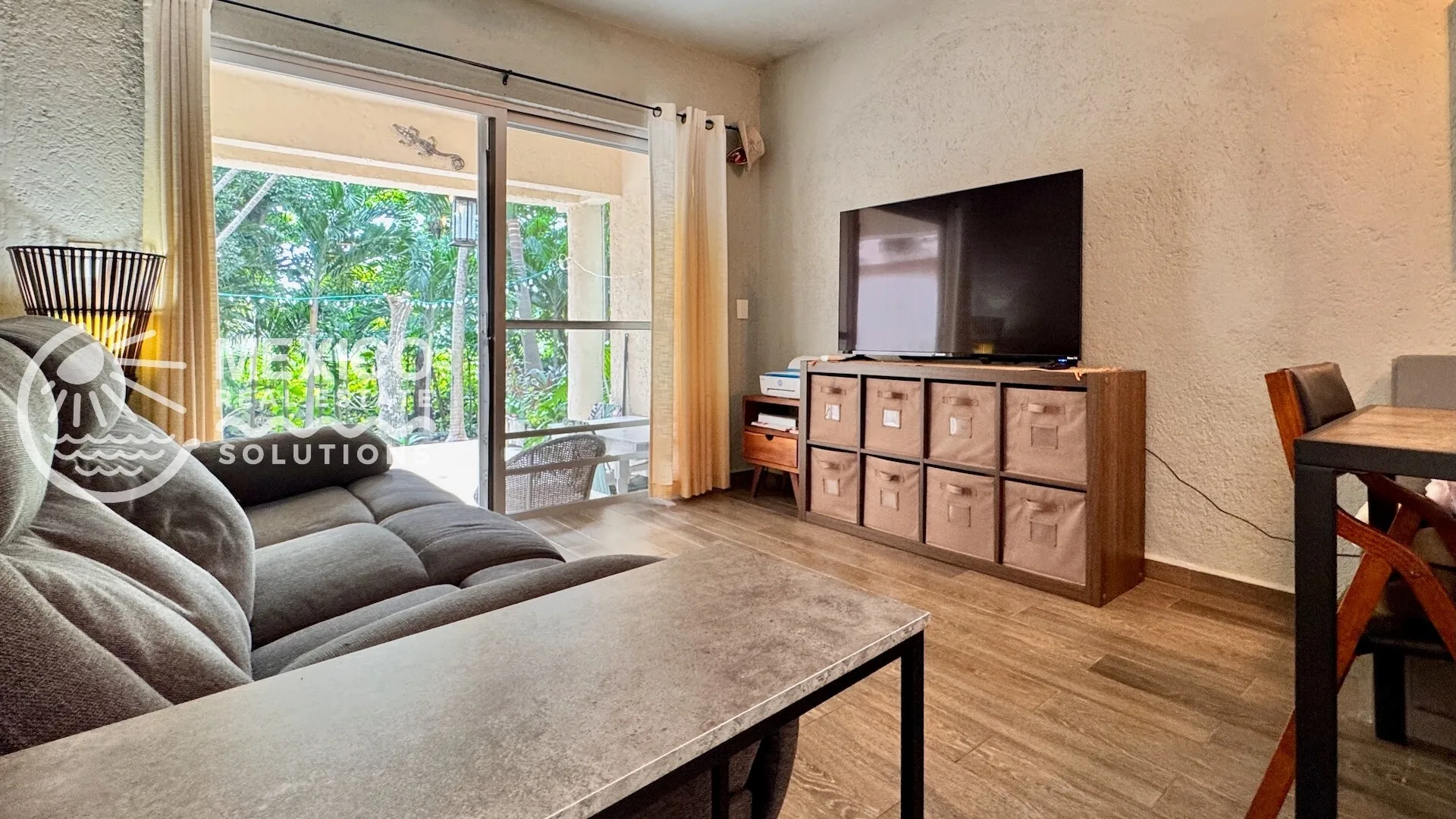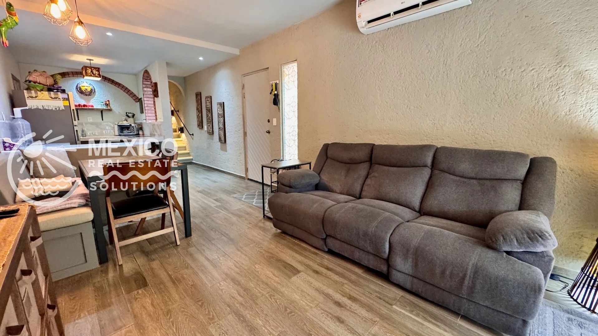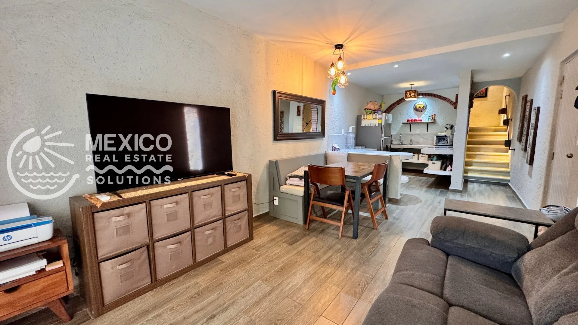 This charming 2-bedroom, 2-bathroom townhome is fully furnished and ready for immediate occupancy. It is located in a gated community within Puerto Aventuras. The property features a private covered terrace that faces a peaceful par-3 golf course.
