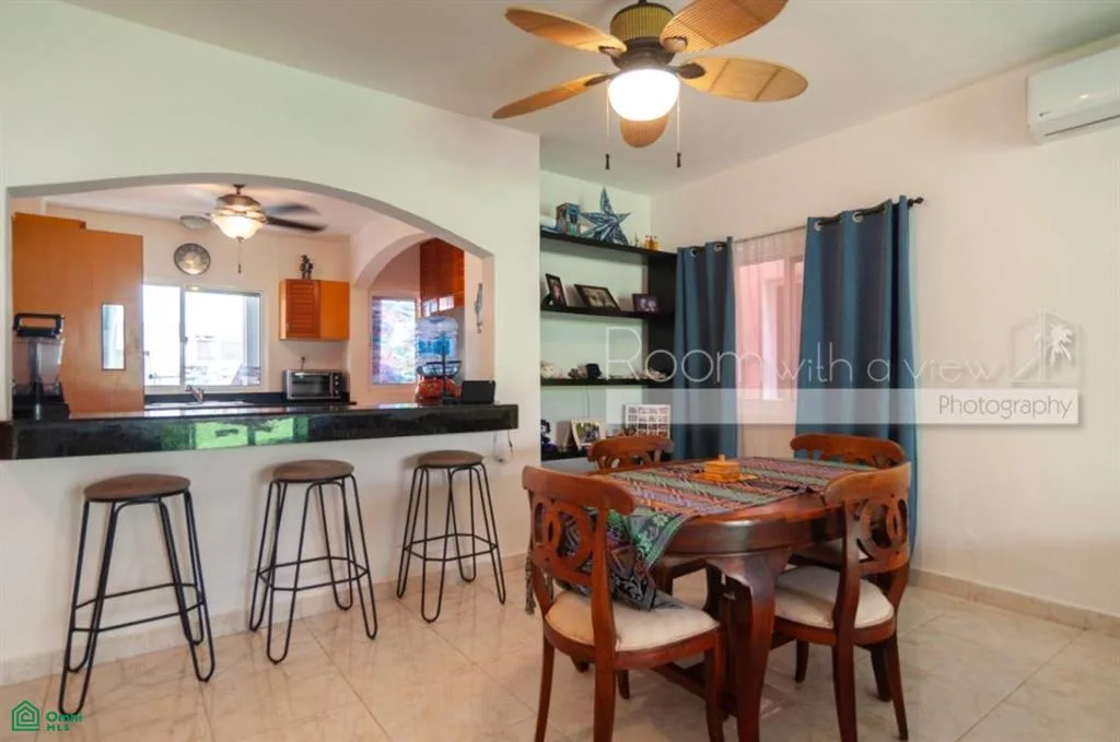 This updated stand-alone townhome is located next to the golf course in Puerto Aventuras. The gated complex features a community pool, tennis and pickleball courts, a restaurant, a mini market, and a beach club. Golf, sailing, snorkeling, and deep-sea fishing are accessible minutes away. The community maintains a peaceful environment with quiet evenings.