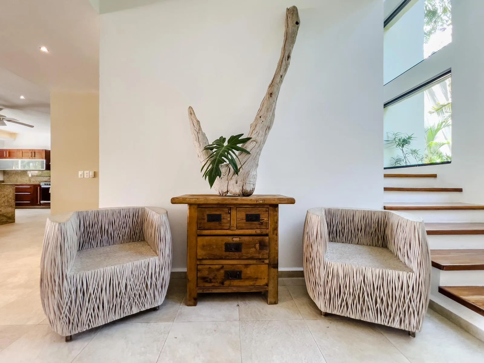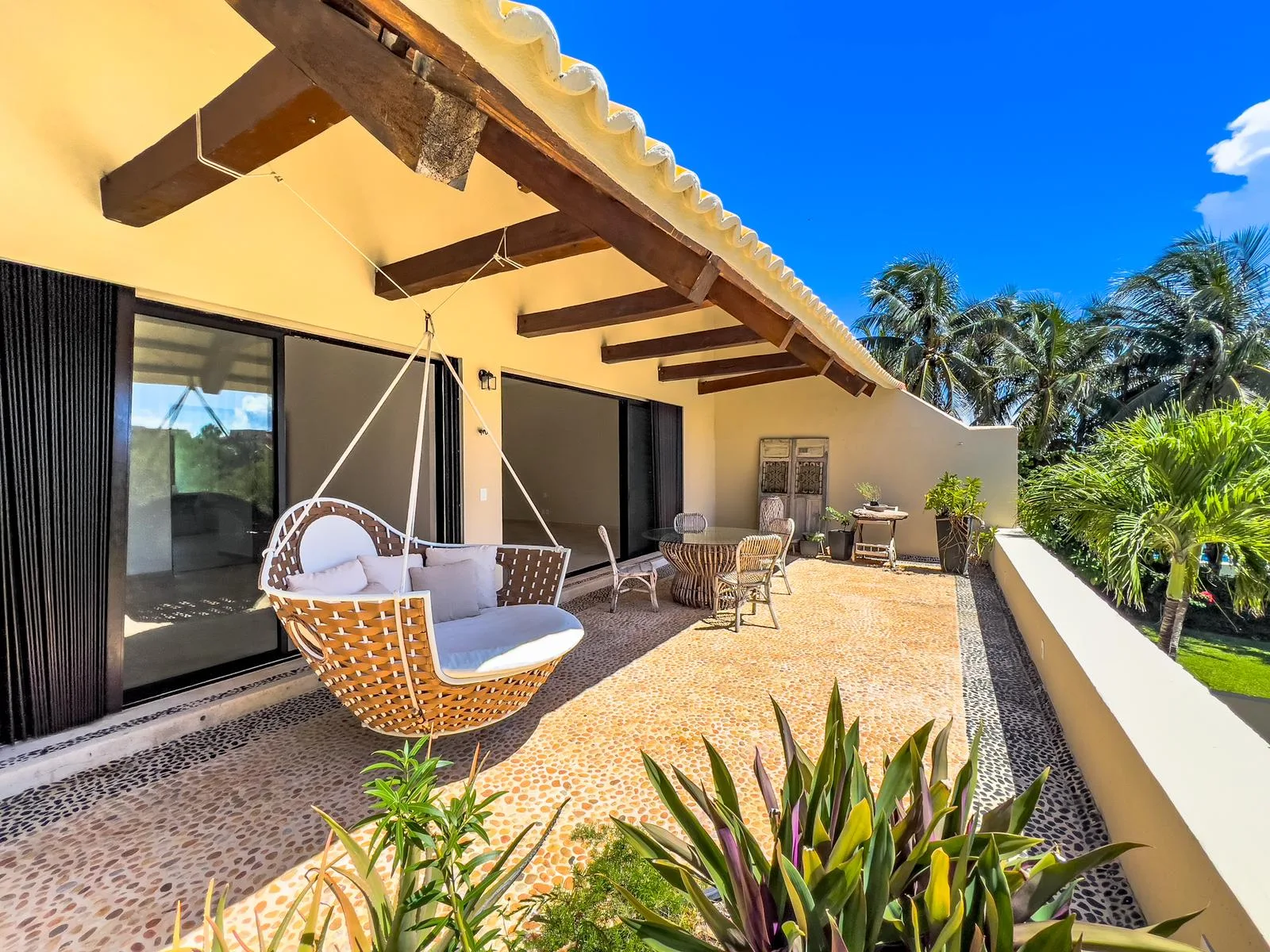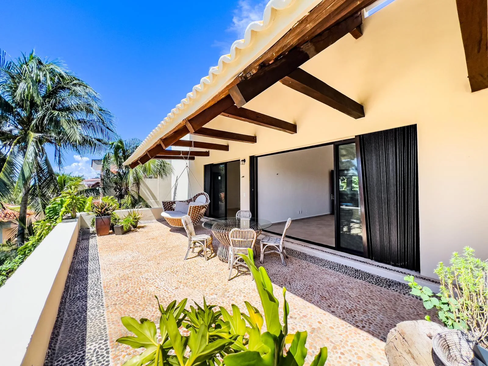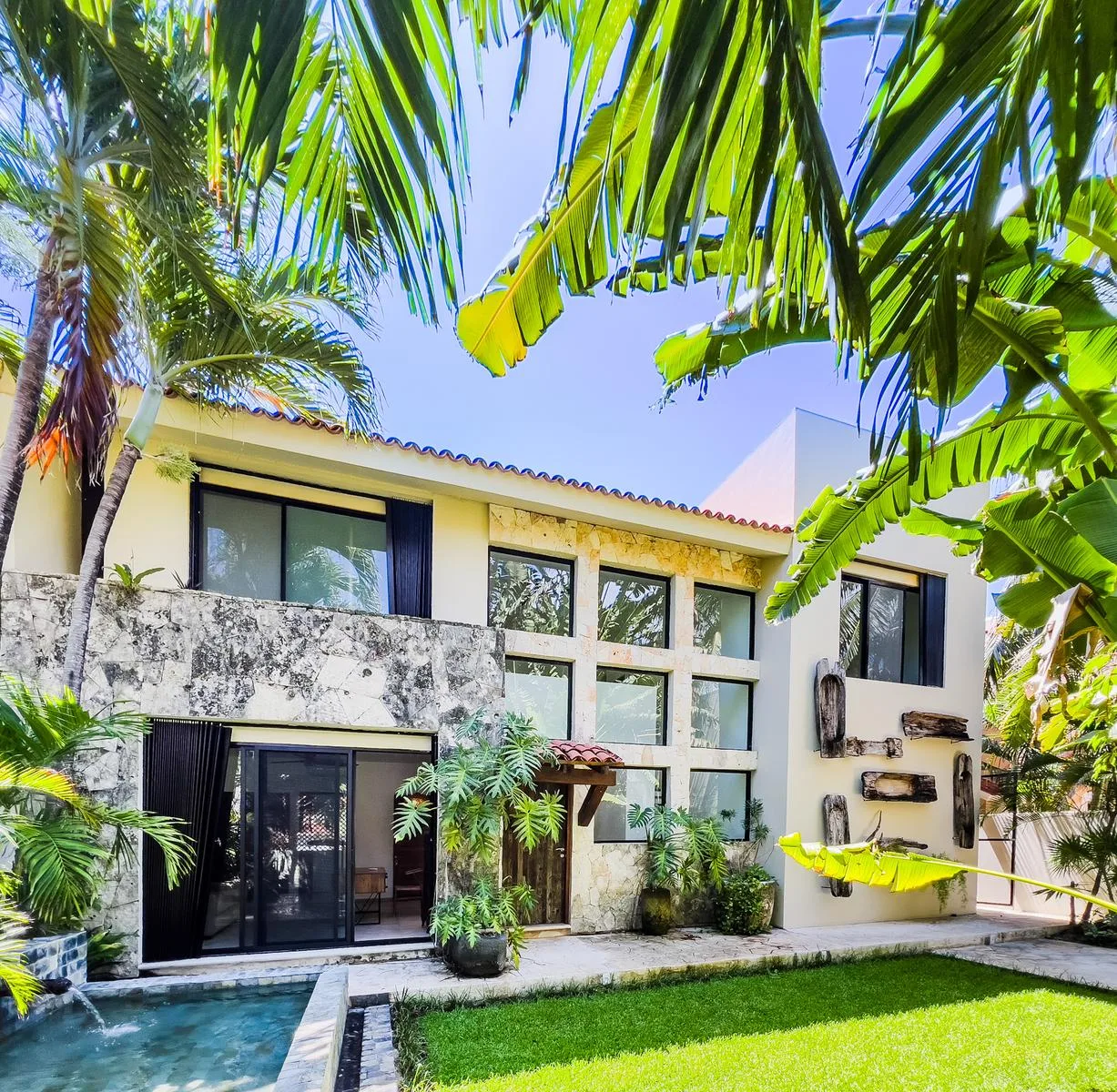 On one of the most exclusive streets in Puerto Aventuras, just three minutes from the school and commercial area, this elegant residence offers 610 square meters of construction on an 855 square meter plot. Its design combines spaciousness, functionality, and a direct connection with the nautical environment of the community.