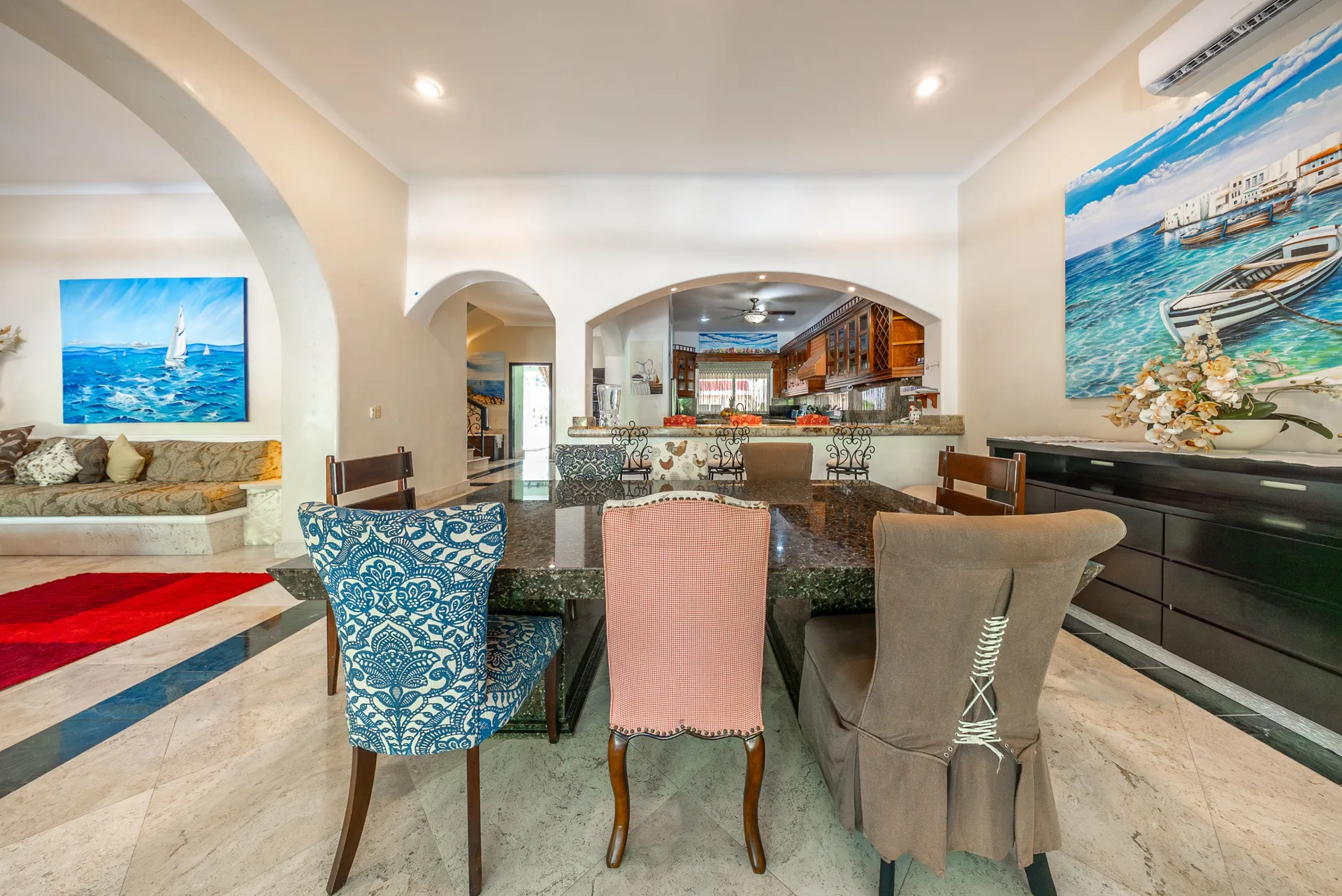 Built approximately 20 years ago, the residence reflects a level of construction quality and material integrity. The community offers access to white sand beaches, a full-service marina, a championship golf course, restaurants, cafés, shops, beach clubs, and an international school, all within a secure residential environment.