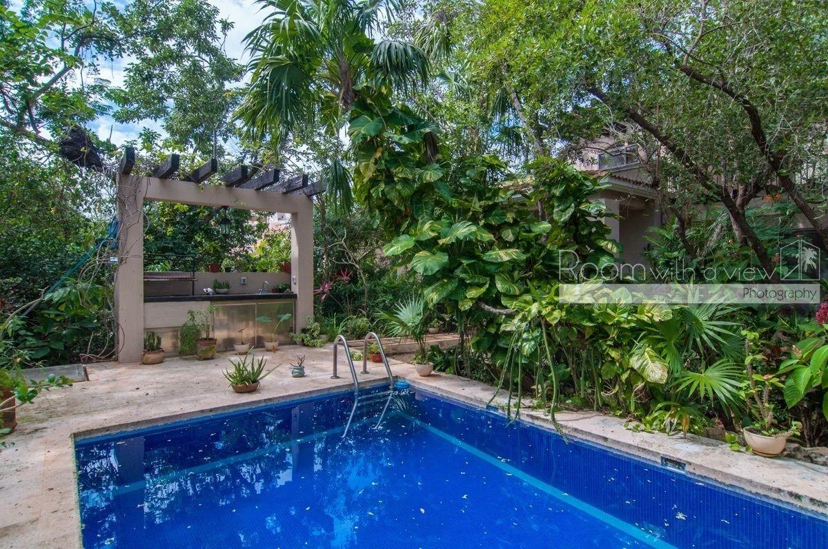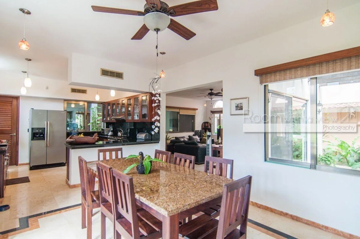 Villa Arbol is a two-story home located on a quiet street by the golf course within the gated resort community of Puerto Aventuras. The community provides access to golf, tennis, sailing, yoga, snorkeling, scuba diving, deep-sea fishing, and water sports. This residential area is oriented toward couples or families, with most restaurants closing at 10pm and established quiet hours after 11pm.