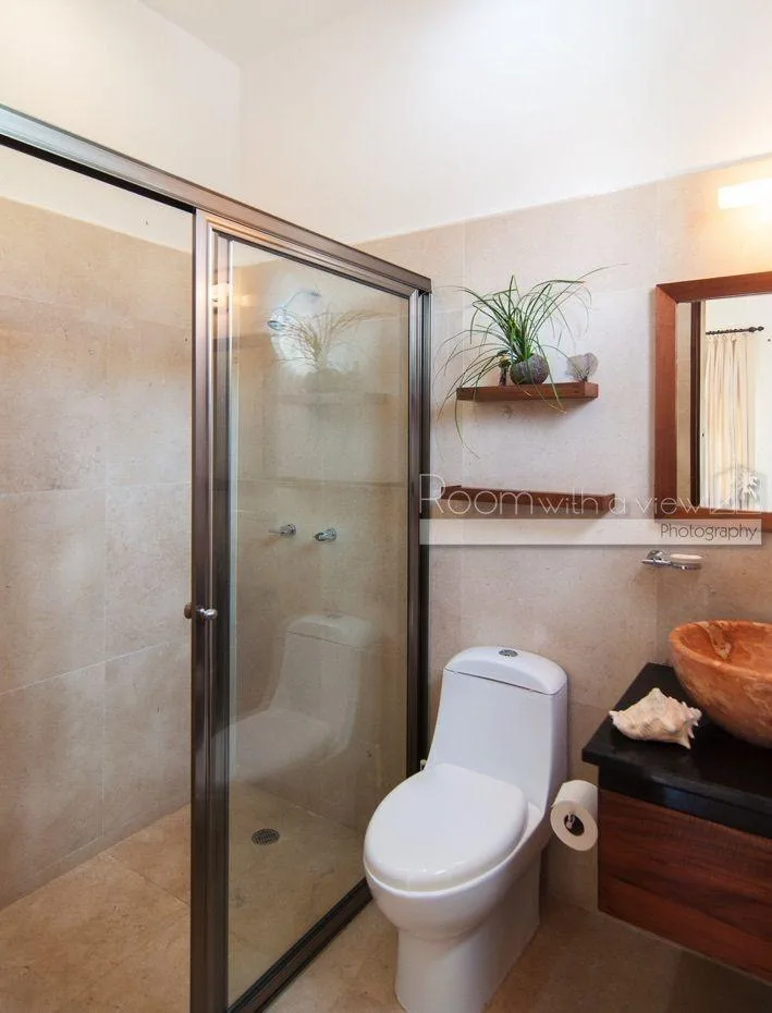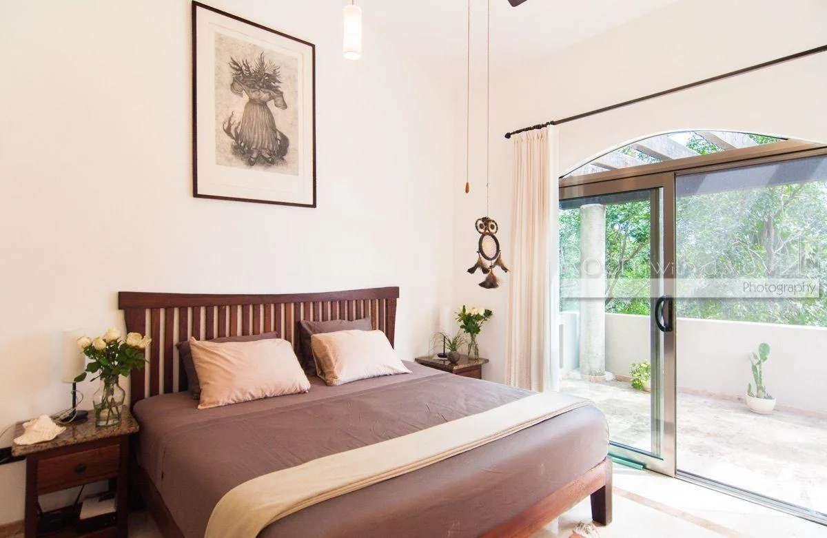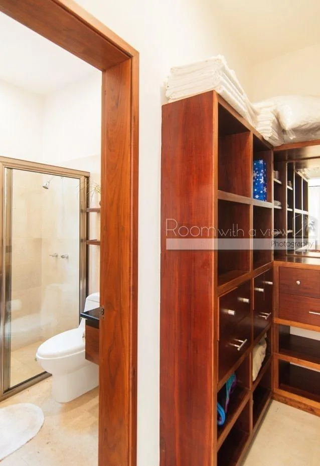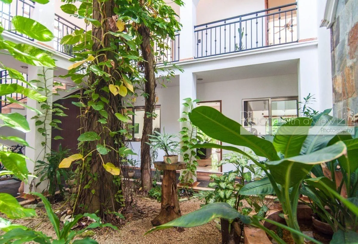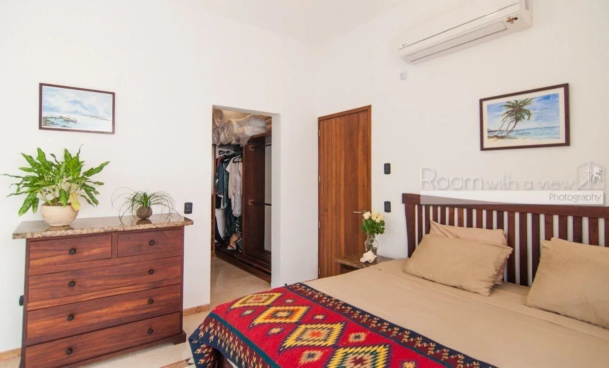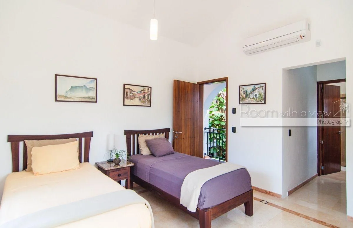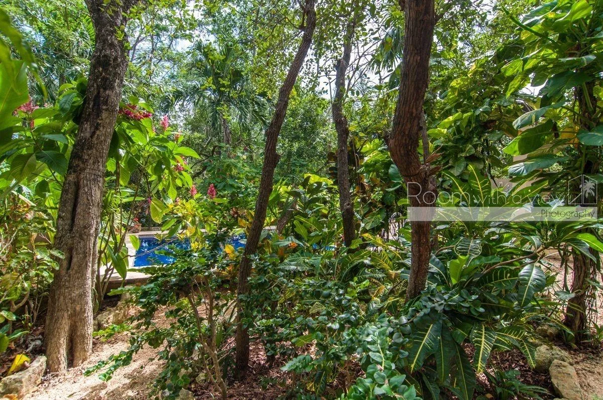 This expansive 6-bedroom home features ample natural light and an open-air atrium with a large tree and a fountain. The main floor includes a bright living room, a dining area, and a full kitchen with a breakfast bar and premium appliances. Finishes consist of high-quality natural materials such as Tzalam wood, marble, granite, and Cantera stone. The upstairs bedrooms open onto private balconies with sweeping views. The home is equipped with solar panels, a dedicated water purification and softening system, ceiling fans, air conditioning, hurricane shutters, and an alarm system.