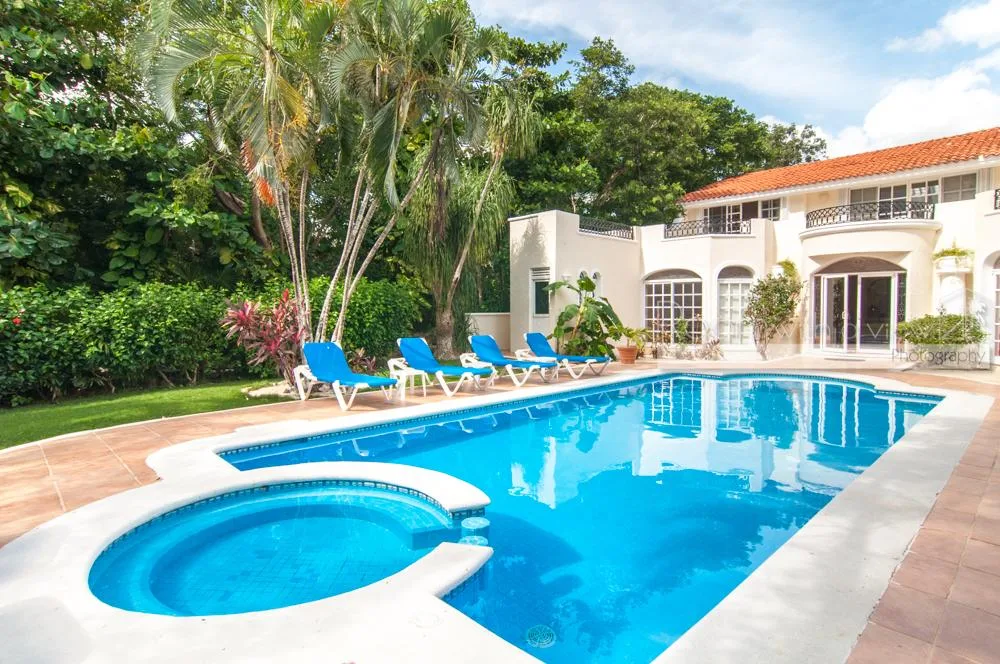 This luxury villa is located within an exclusive, gated golf course community in the picturesque seaside setting of Puerto Aventuras and Soliman Bay on the Riviera Maya coast. The serene area is approximately 40 minutes north of Tulum, 30 minutes south of Playa del Carmen, and 60 minutes from the airport, with various local amenities and attractions within a short drive.
