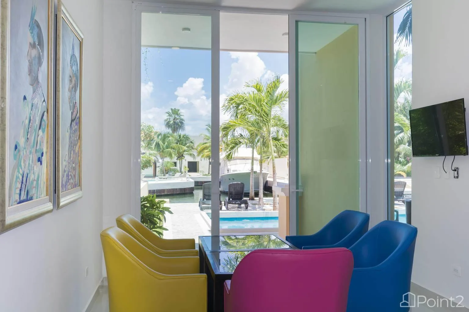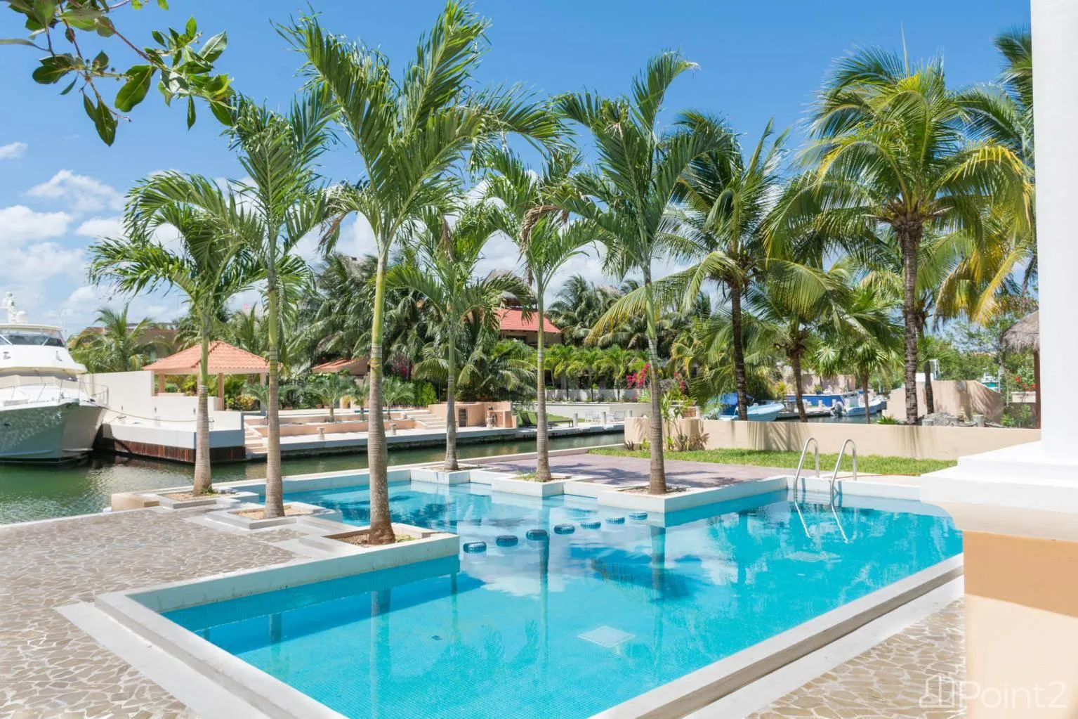 The entire house offers beautiful views of the nearby marina and pool. The property includes 15 meters of private dock space, suitable for mooring a 40-foot boat directly in front of the home.