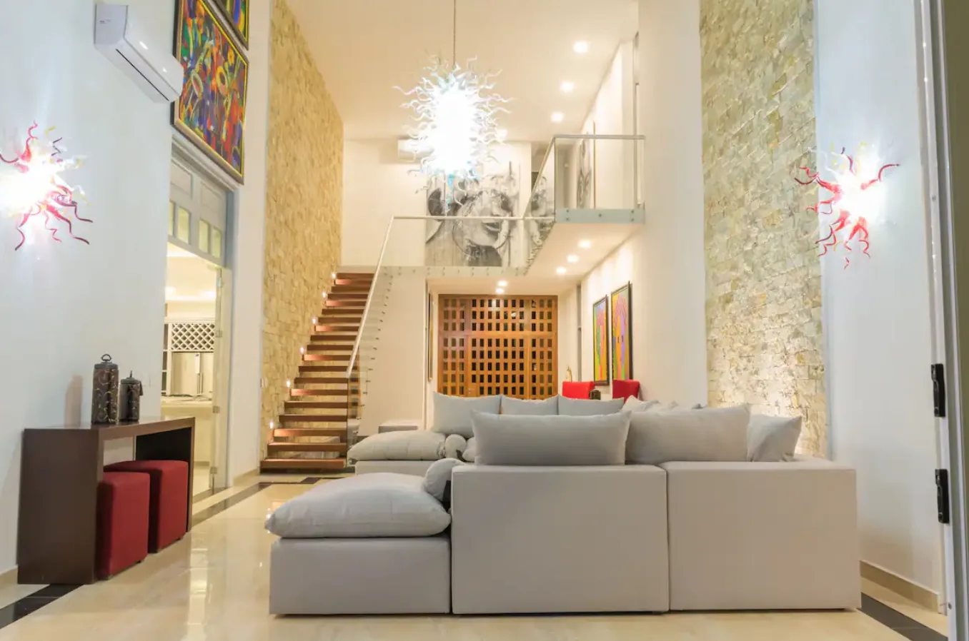 Located within the Puerto Aventuras community, this villa combines modern design with natural beauty. The property encompasses 645 square meters of construction and features five spacious bedrooms and five well-appointed bathrooms, a studio-bar, and a large double living room. The kitchen is generously sized for family and holiday gatherings. Every space provides tranquility, comfort, and privacy.