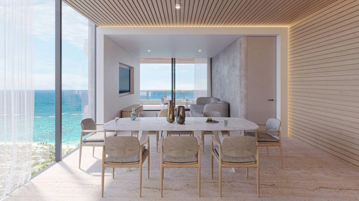 The condominiums range in size from studios to four-bedroom units with various layouts. All units feature a spacious open-concept layout with floor-to-ceiling windows that allow for abundant natural light, and some offer ocean views. Each unit includes a fully equipped kitchen with an island and premium appliances, a sun-filled living room and dining area, and a private covered terrace with a jacuzzi. Bedrooms are furnished with king-size beds and feature closets and en suite bathrooms. The condos have marble floors and natural finishes that are durable and easy to maintain. All units are fully furnished and equipped with air conditioning.