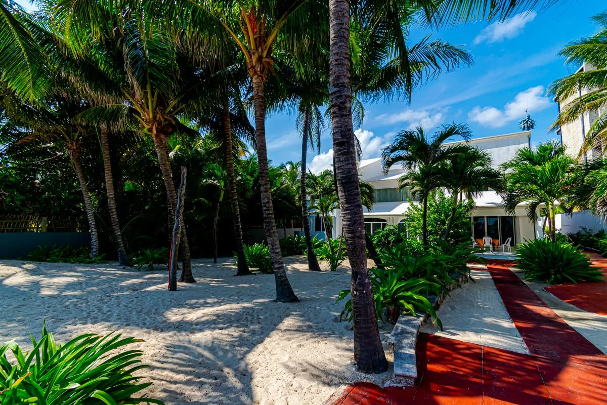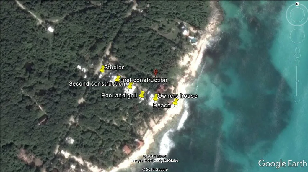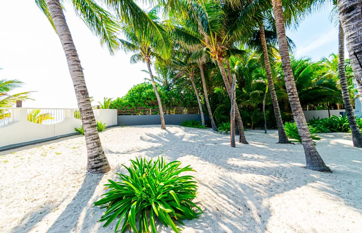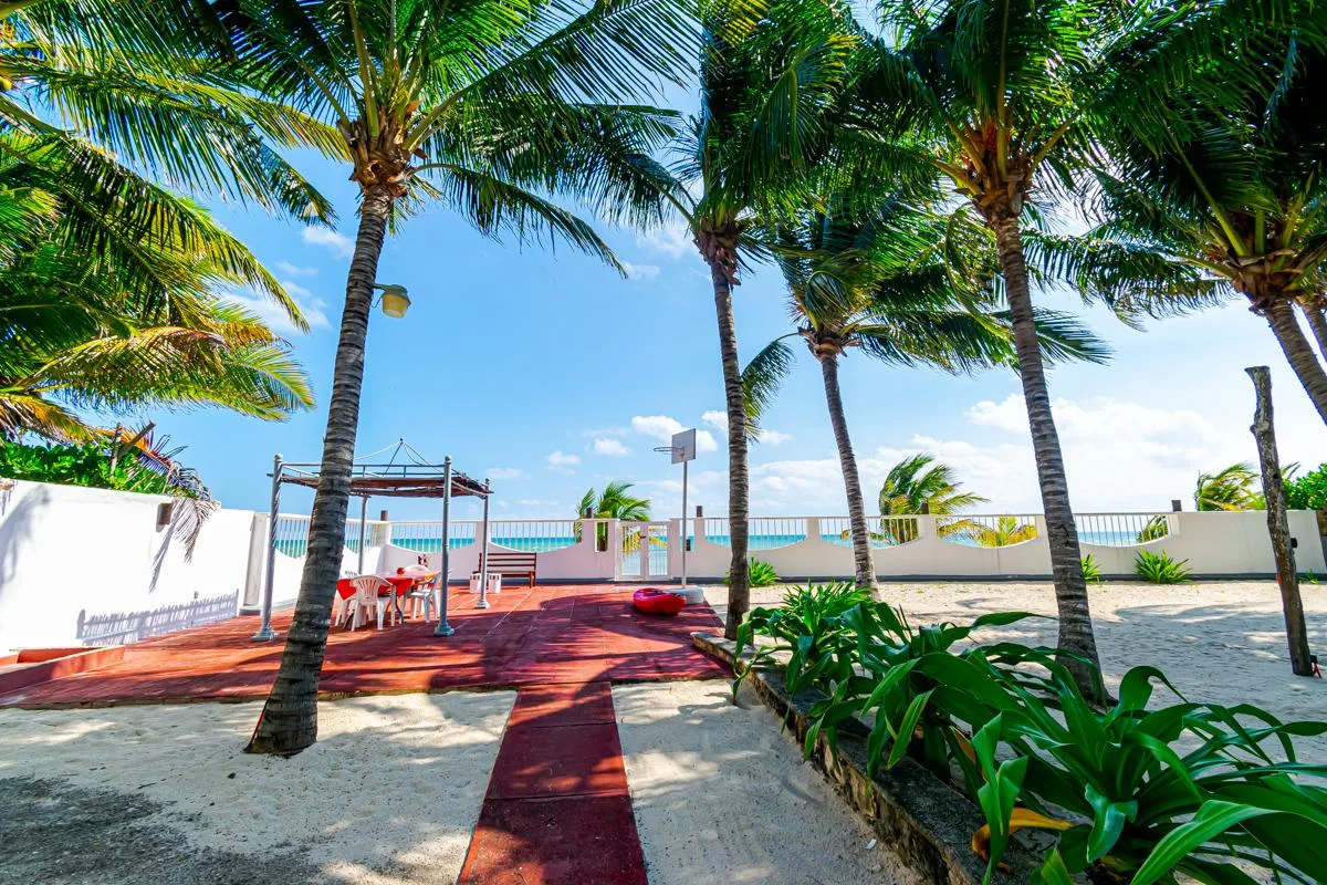 This spacious property is situated directly on the Caribbean Sea in Playa del Secreto. Playa del Secreto is located next to Puerto Morelos, approximately 20 minutes from Cancún International Airport and 20 minutes from Playa del Carmen. The area is known for its peaceful atmosphere, white sand beaches, and privacy, with few permanent neighbors and a primarily vacation-oriented environment. The land use is mixed, allowing for potential hotel conversion.
