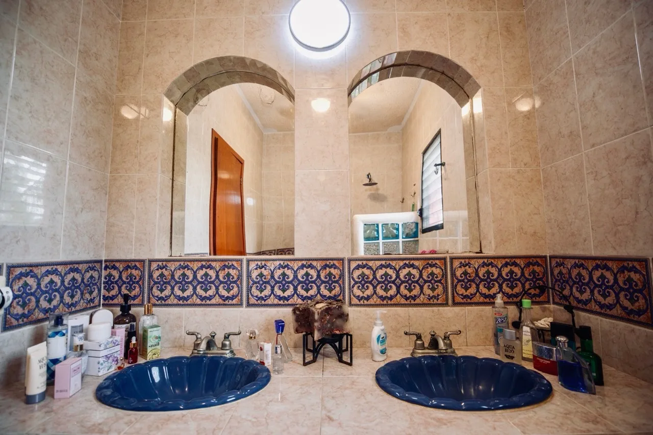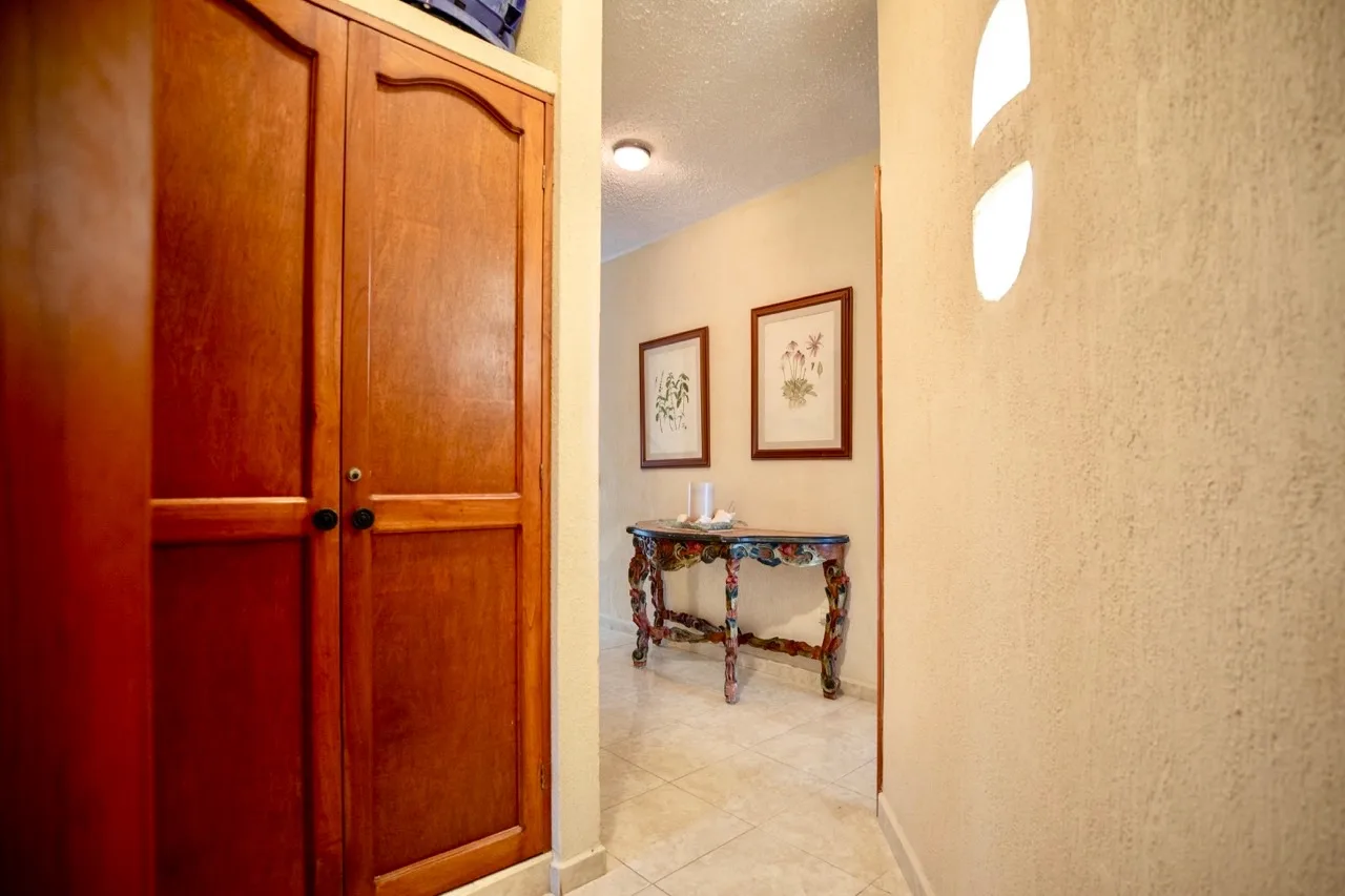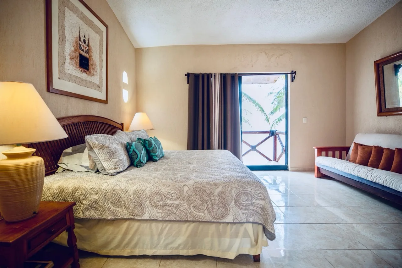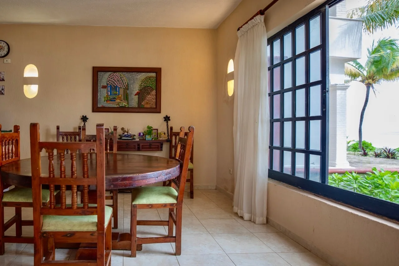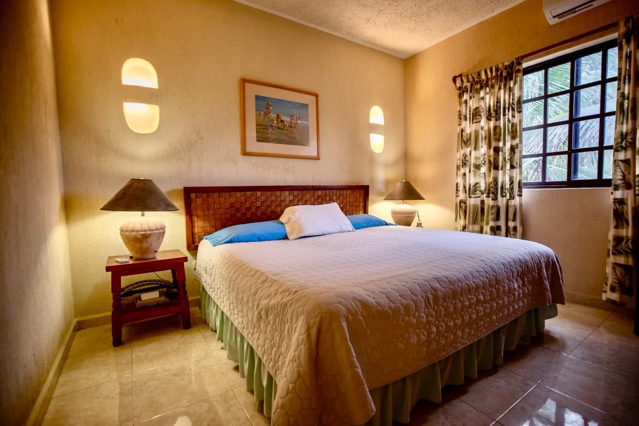 This beachfront villa in Puerto Morelos is located just steps from the turquoise waters of the Caribbean. The residence is spread over two levels and features three well-sized bedrooms and three full bathrooms.