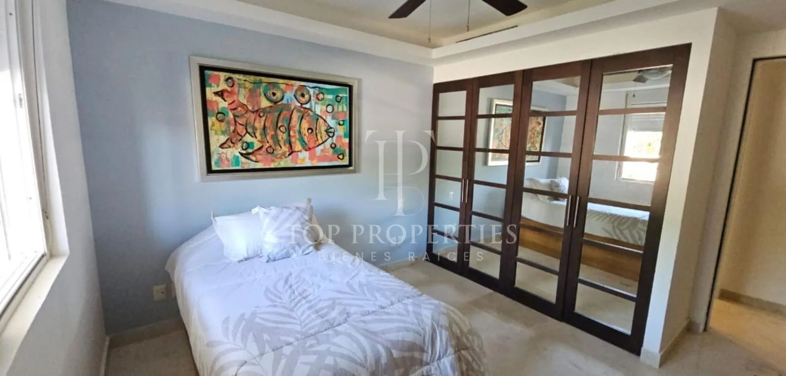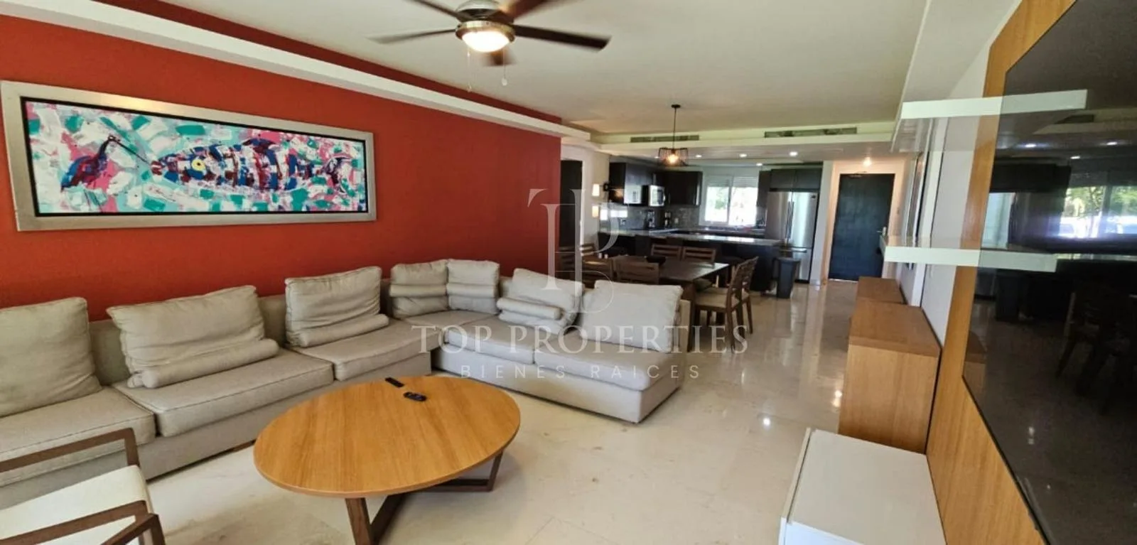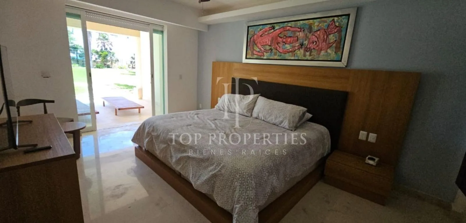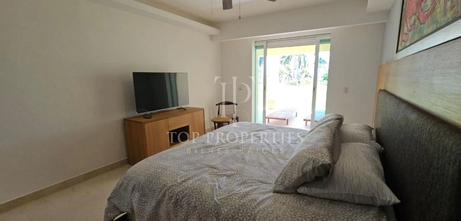 This furnished 138-square-meter apartment is located on the ground floor and faces the ocean in Puerto Morelos, Quintana Roo. The unit consists of three bedrooms and two full bathrooms.