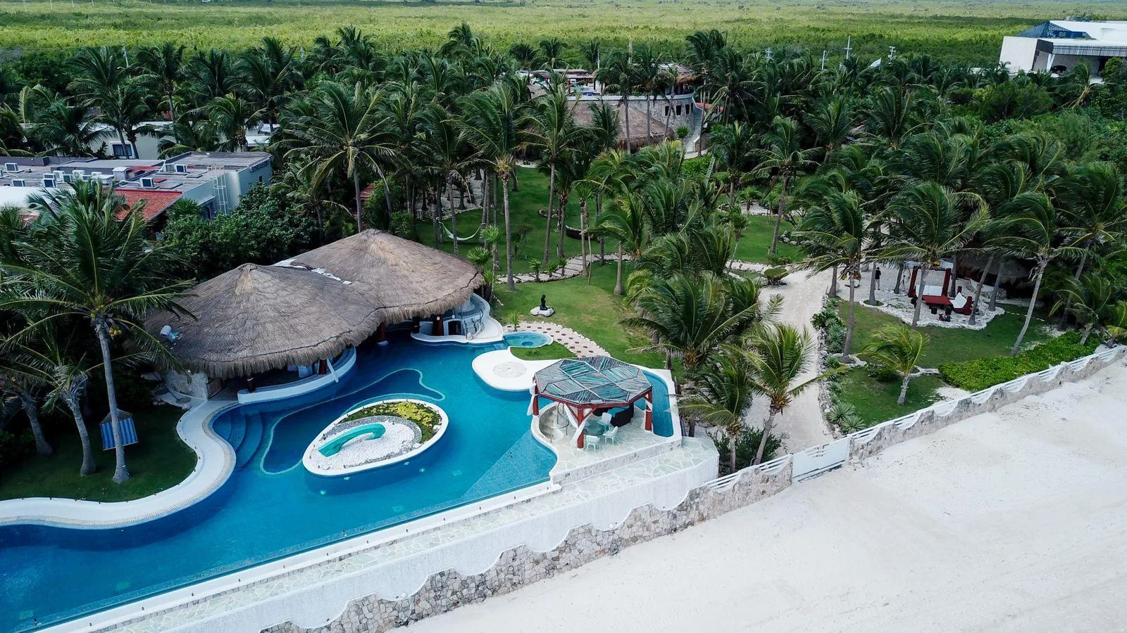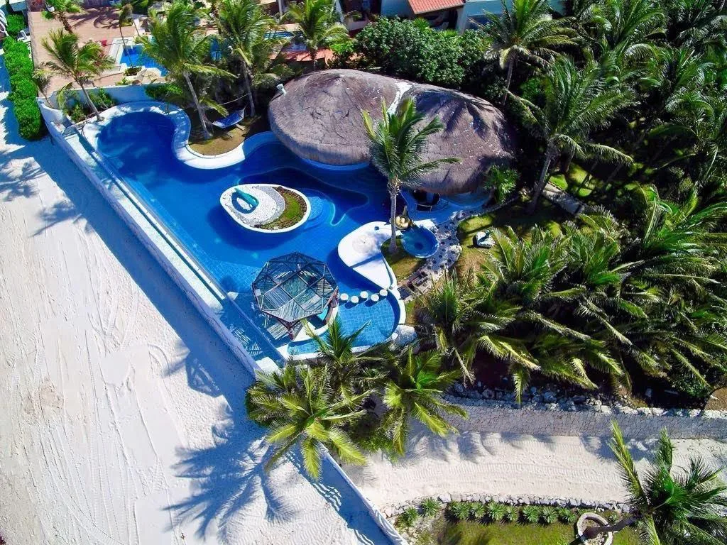The total land area is 7, 700 square meters with approximately 80 linear meters of private beach frontage. The property is located in Puerto Morelos, Mexico.