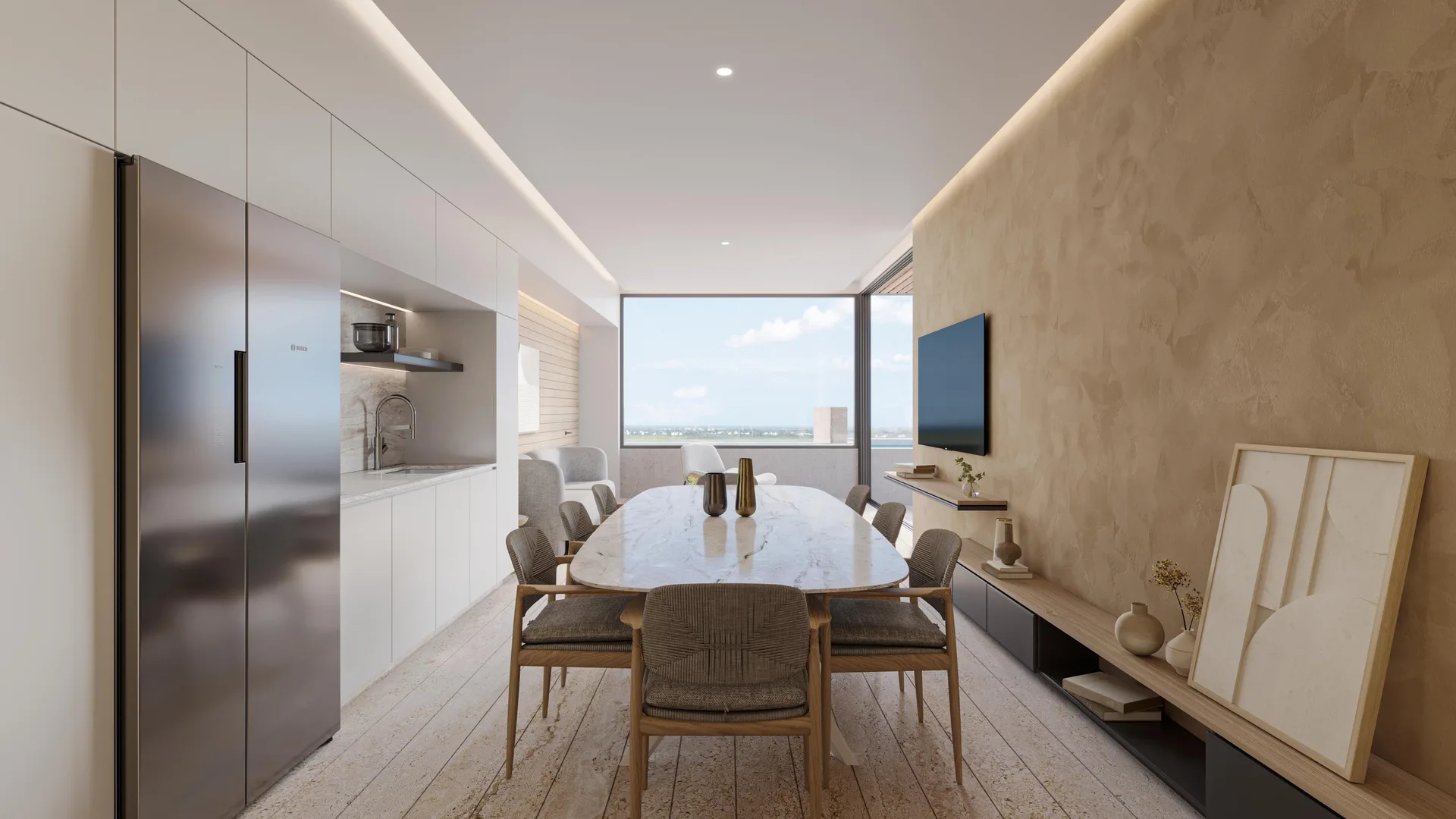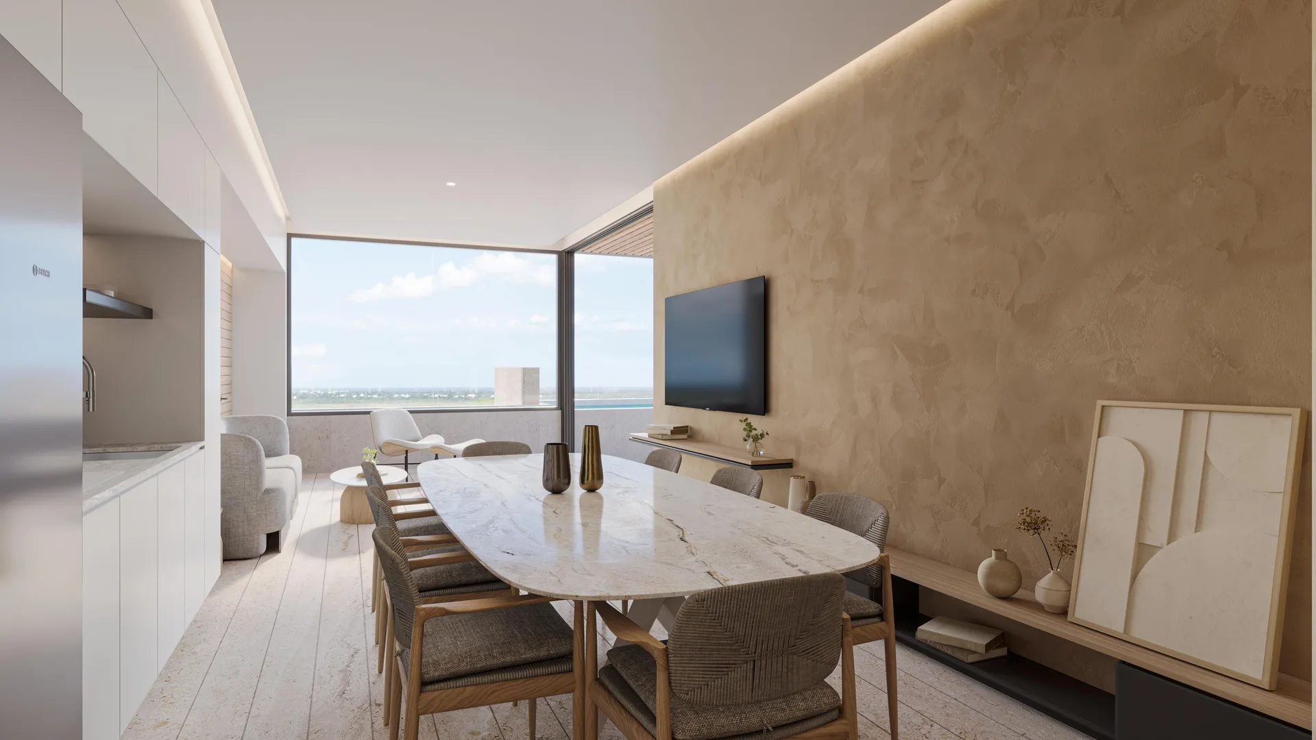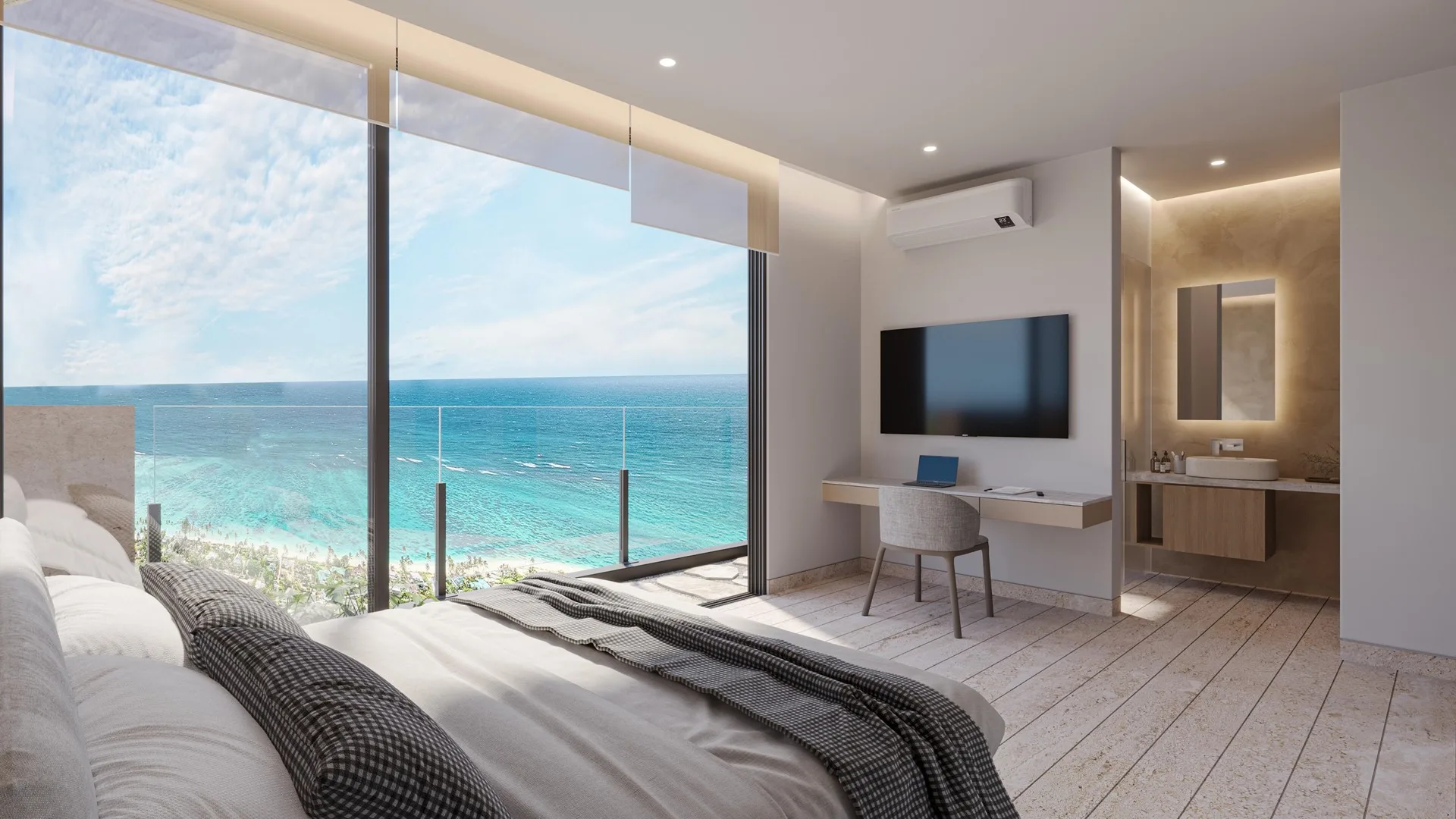 Inspired by LEED design principles, the apartments offer significant energy savings through innovative solutions. These include naturally lit spaces with facades optimized for solar control, high-performance hurricane-resistant windows with superior insulation, efficient inverter cooling systems and pumping mechanisms, low-consumption water systems, and instant heating technology.