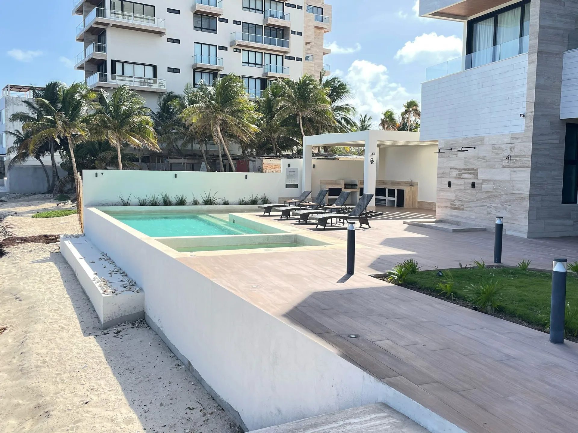 The property is situated in a prime oceanfront position within Puerto Morelos, a tranquil coastal town on the Riviera Maya known for its preserved natural beauty and charming fishing village atmosphere.