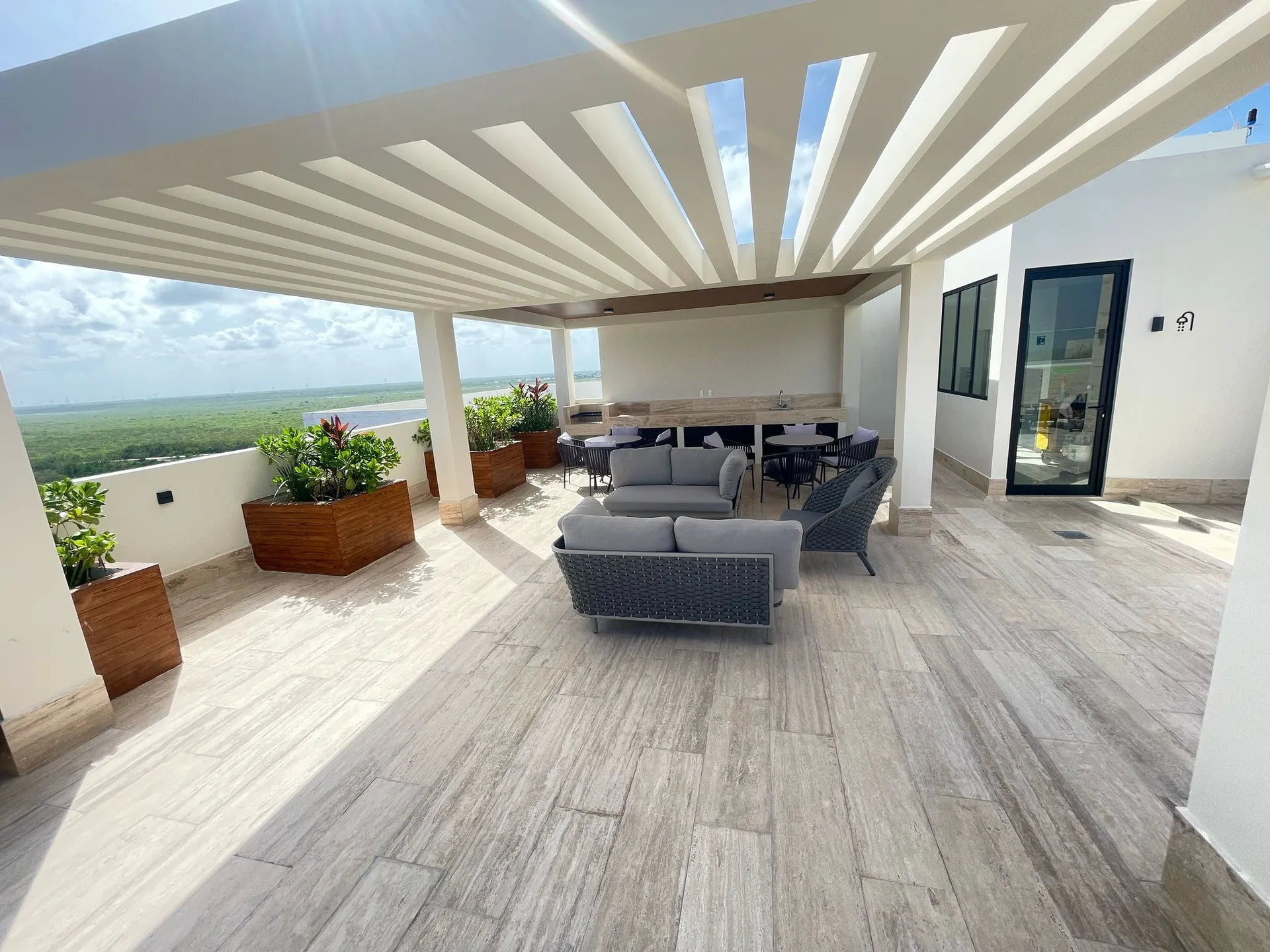 Located directly on the coastline of Puerto Morelos, this oceanfront residence offers one of the most impressive views in the entire Riviera Maya. Its elevation guarantees a completely clear, unobstructed view of the Caribbean Sea and the iconic Puerto Morelos pier, providing an uncommon sense of spaciousness, privacy, and natural light.