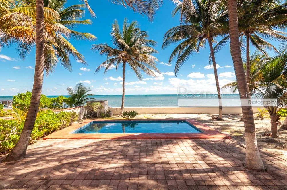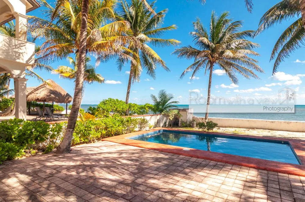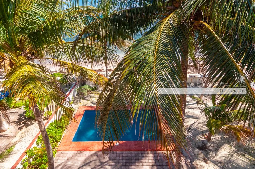 This oceanfront residence offers panoramic views of the Caribbean Sea and benefits from mixed-use zoning. It is situated just north of Puerto Morelos in a quiet coastal setting, approximately halfway between Cancún and Playa del Carmen and about 30 minutes from the airport.